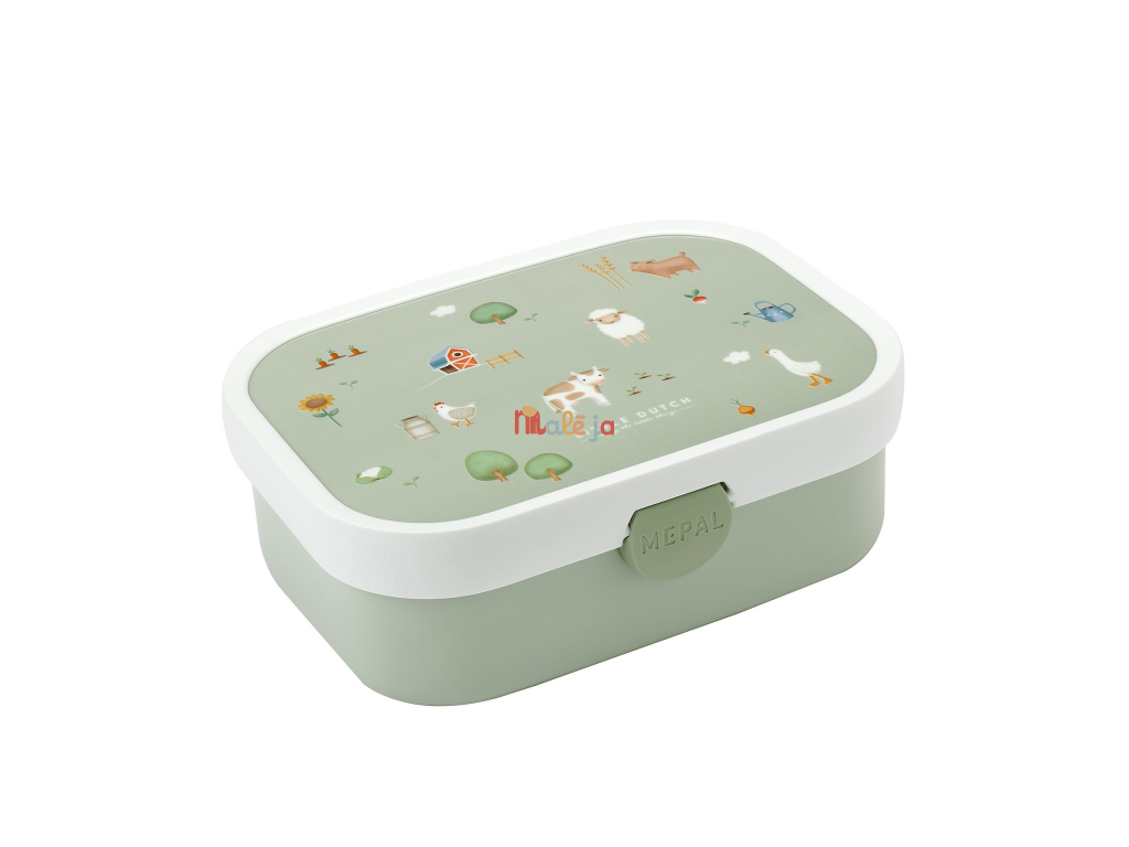 Praktický desiatový box ponúka možnosť rozdelenia na tri priehradky na oddelenie jednotlivých častí uloženej desiaty. Súčasťou boxu je aj malá vidlička, ktorá je ideálna na napichovanie kúskov ovocia či zeleniny. Zacvakávací uzáver je zárukou bezpečného uzavretia obsahu boxu.