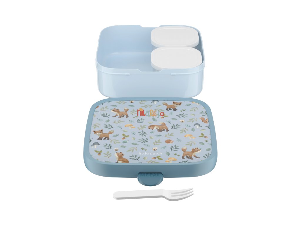 Veľký desiatový box má vo vnútri dve vyberateľné krabičky s viečkom na oddelenie jednotlivých častí uloženej desiaty. Súčasťou boxu je aj malá vidlička, ktorá je ideálna na napichovanie kúskov ovocia či zeleniny. Zacvakávací uzáver je zárukou bezpečného uzavretia obsahu boxu.