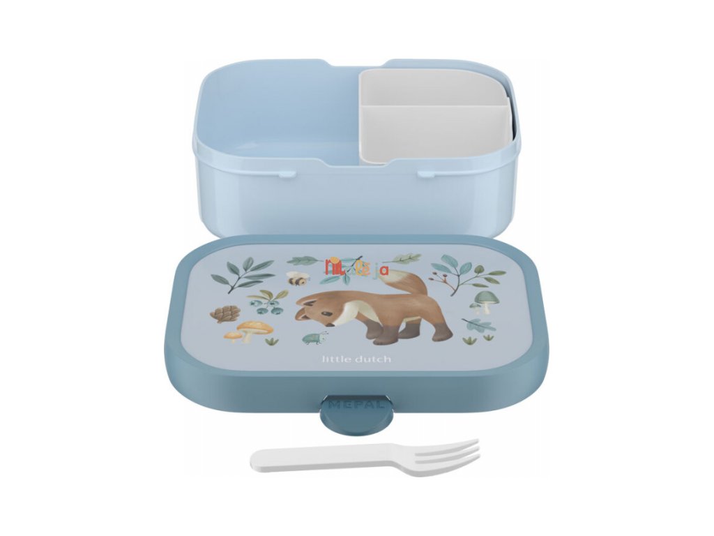 Praktický desiatový box ponúka možnosť rozdelenia na tri priehradky na oddelenie jednotlivých častí uloženej desiaty. Súčasťou boxu je aj malá vidlička, ktorá je ideálna na napichovanie kúskov ovocia či zeleniny. Zacvakávací uzáver je zárukou bezpečného uzavretia obsahu boxu.