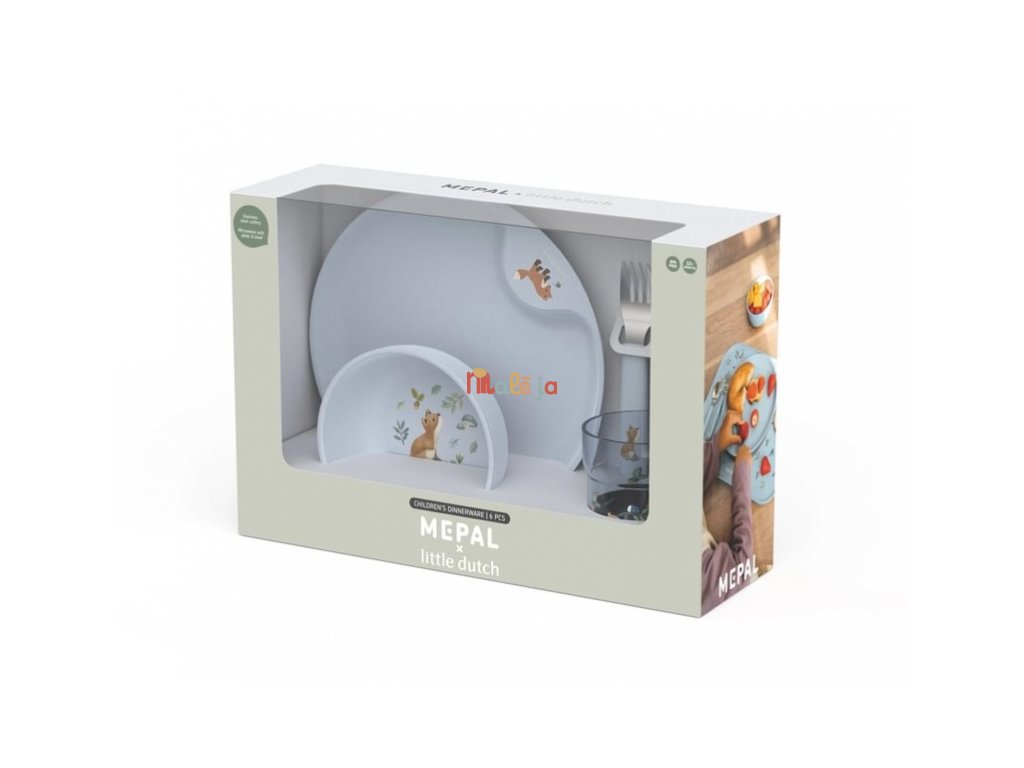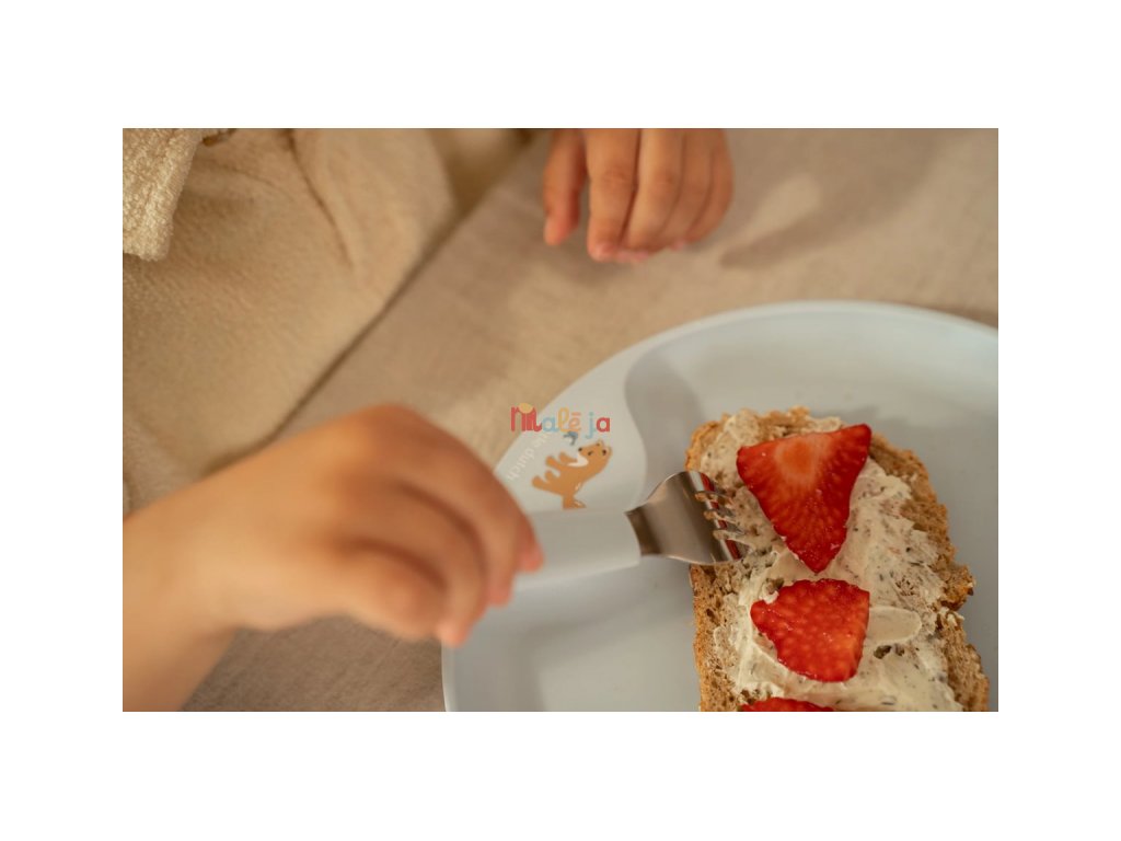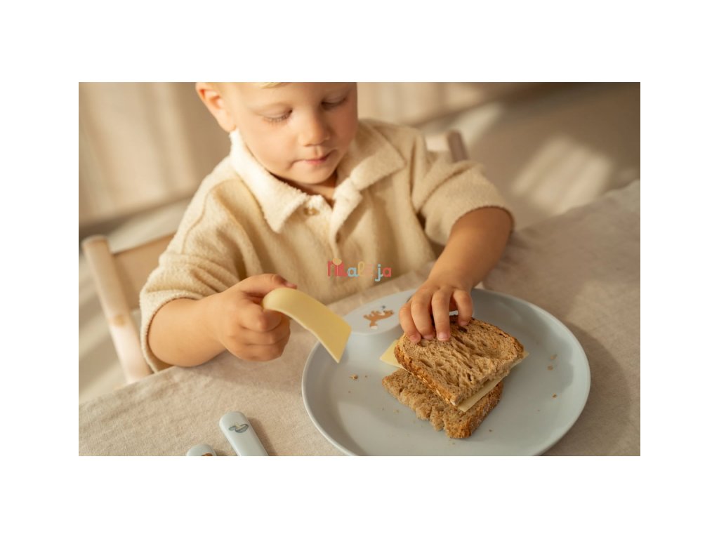 Detský tanier je vhodný na samostatné stolovanie dieťaťa, vďaka praktickému úchytu sa ľahko prenáša. Miska je ideálna na servírovanie detským zeleninových či ovocných príkrmov, polievok, kaší, ovocia a pod. Tanier aj miska sú vyrobené z ľahkého, mimoriadne odolného plastu. Téglik z priehľadného, odolného plastu je ideálny pre deti, ktoré sa učia piť z pohára. Príbor z kvalitnej nerezovej ocele s plastovou rukoväťou pre ľahké držanie uľahčí dieťaťu prechod z kŕmenia lyžičkou na stolovanie s príborom.