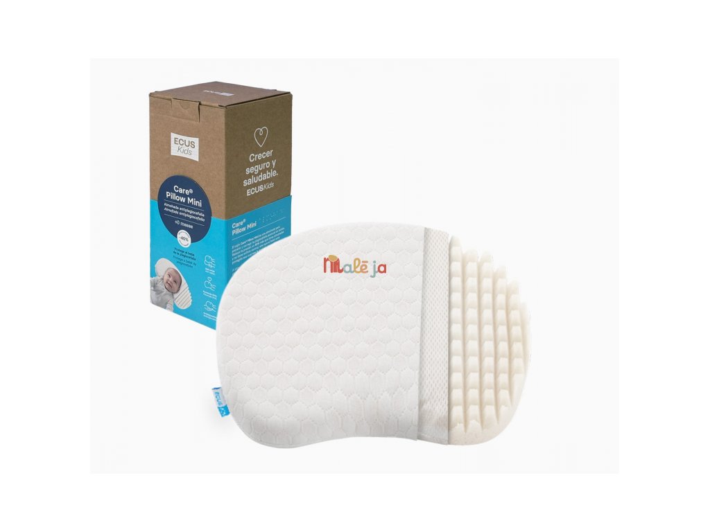 Dětský mini polštář Ecus Kids Care pomáhá předcházet zploštění hlavičky (plagiocefalii) u kojenců. Snižuje tlak o 40 % více než jiné polštáře a nemá středový otvor, takže chrání dítě bez ohledu na polohu jeho hlavy.