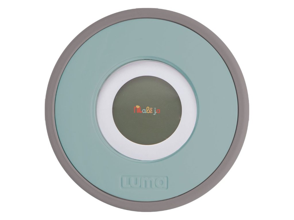 Digitálny kúpací teplomer LUMA sa automaticky aktivuje, keď príde do kontaktu s vodou a pláva tak, aby bolo možné spoľahlivo vidieť displej. Modrá znamená príliš chladno, červená znamená príliš teplo a zelená je akurát. Okrem farebného indikátora je možné odčítať presnú teplotu vody. Na displeji je tiež indikátor stavu batérie. Teplomer sa po použití automaticky vypne. Teplomer môžete ľahko vyčistiť, snímte viečko, utrite ho a je čistý.