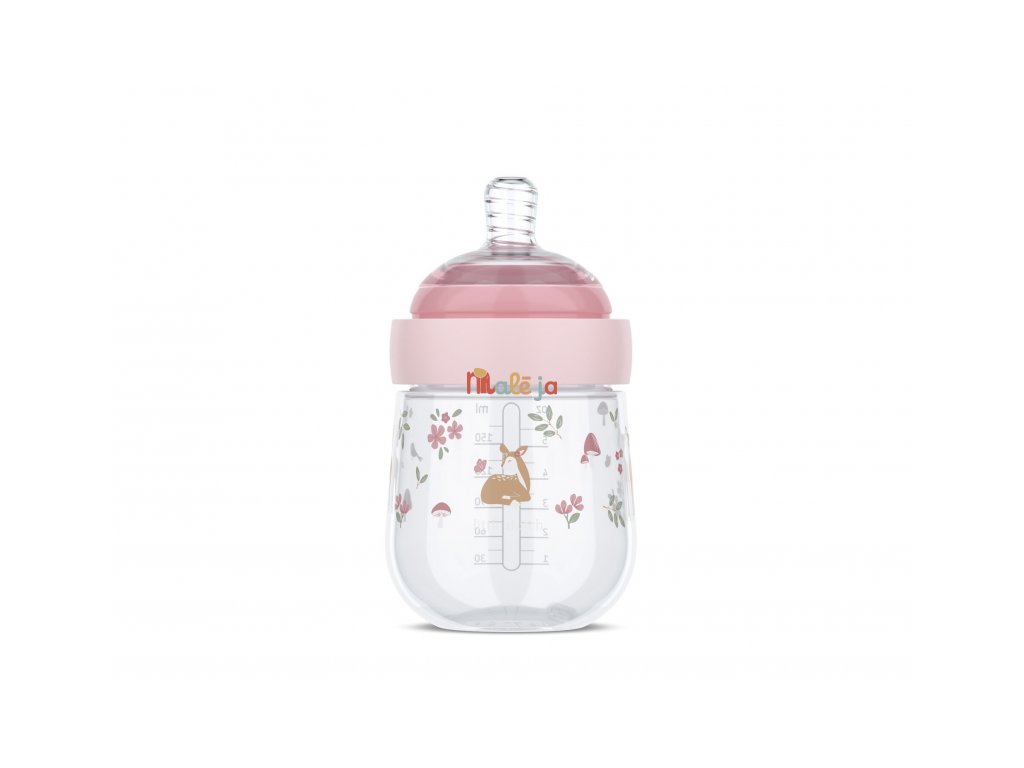 Dojčenská fľaša Little Dutch s krásnou potlačou a cumlíkom s antikolikovým ventilom je ideálna na kŕmenie vášho bábätka od narodenia doma aj na cestách. Vďaka ergonomickému tvaru sa fľaštička pohodlne drží. Anti-kolikový ventil zaisťuje stály prísun vzduchu, ktorý pomáha predchádzať kŕčom a nadúvaniu tým, že odvádza vzduch od bruška dieťaťa Cumlík s pomalým prietokom je vhodný pre deti od narodenia Špirálový dizajn cumlíka zabraňuje upchávaniu a zaisťuje plynulé sanie Prirodzený tvar cumlíka z lekárskeho silikónu podporuje prirodzený spôsob kŕmenia a ľahký prechod medzi dojčením a fliaš Široké hrdlo umožňuje ľahké plnenie aj čistenie Priehľadné viečko slúži na hygienické uzavretie a uchovanie obsahu Vhodné do umývačky riadu, mikrovlnnej rúry, chladničky aj mrazničky Zloženie: PP, silikón, bez obsahu BPA Objem: 165 ml Fľaštička je súčasťou dizajnovej kolekcie hračiek a doplnkov Little Dutch Fairy Garden, inšpirovanej životom na záhrade. K fľaštičke je možné dokúpiť náhradné cumlíky s pomalým, stredným a rýchlym prietokom. Vhodné pre deti od narodenia.