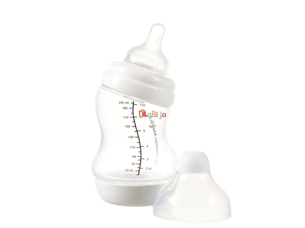 Unikátnu S-fľašku Difrax môžete použiť už od samého narodenia, ako pre novorodenca, tak aj pre predčasne narodené bábätko. Vďaka jednoducho rozoberateľnému dnu s ventilom je fľaška ľahko umývateľná. Antikolikový ventil na dne fľašky púšťa do fľašky pri saní vzduch tak, že sa nemieša s jej obsahom. Tým zaručuje bábätku výživu bez zbytočného prehĺtania vzduchu. Predchádza tak žalúdočným kŕčom a dávenia. S-fľaška Difrax je prvou svojho druhu, ktorá bábätku aj jeho rodičom zaisťuje kŕmenie v prirodzenej polohe. Vyrába sa v niekoľkých trendy farbách a obľúbených veľkostiach. Pred každým použitím skontrolujte, že sú priechody v antikolikovom ventile čisté, a teda priechodné.