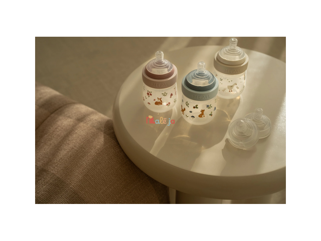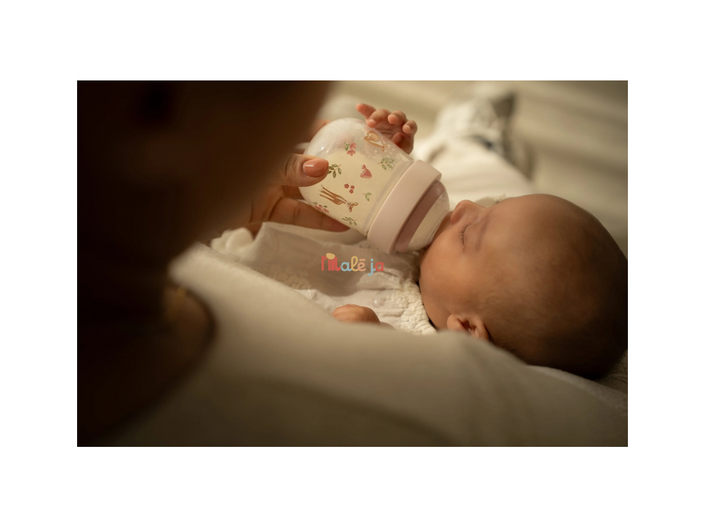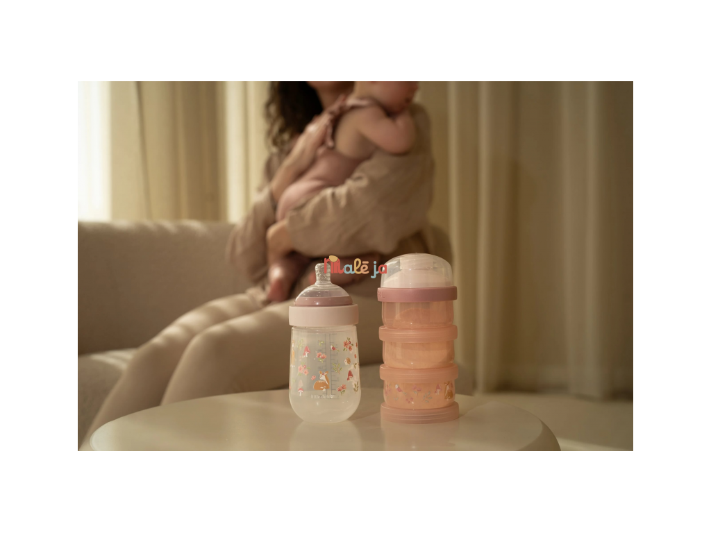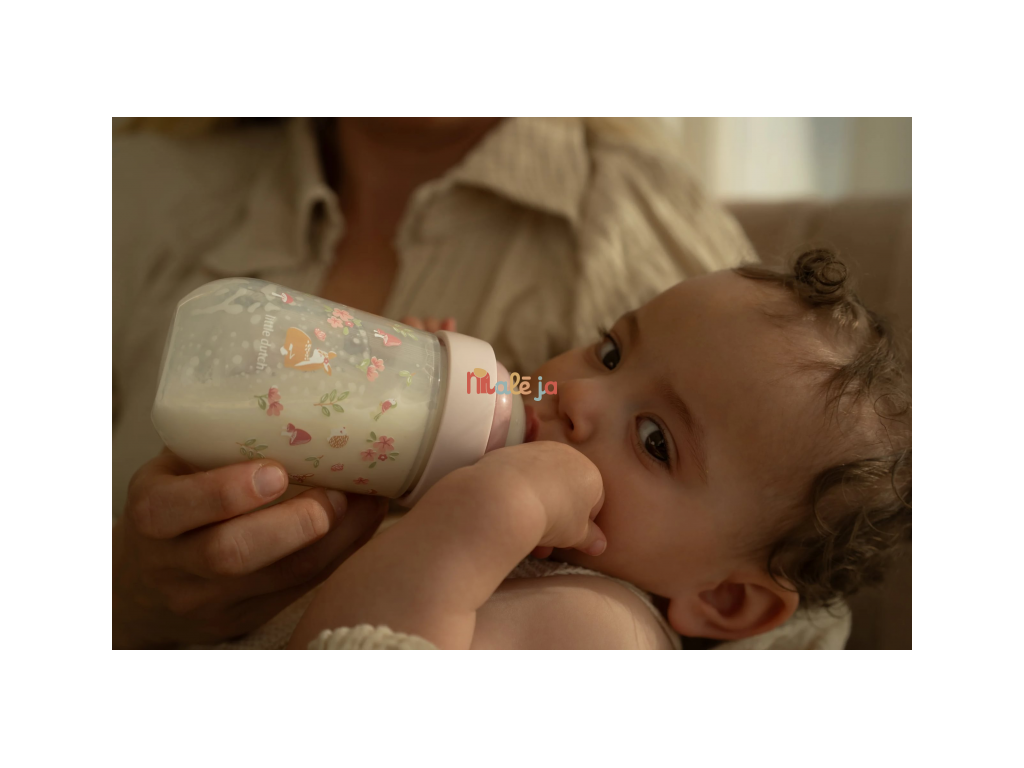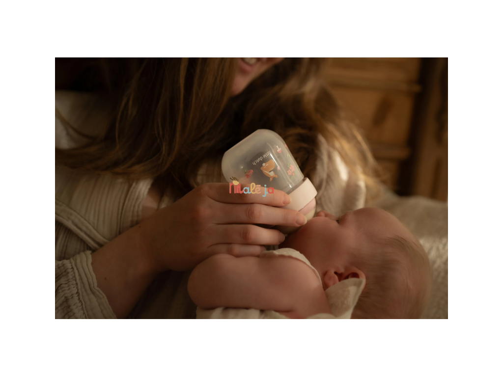 Sada dojčenských fliaš Little Dutch s krásnou potlačou a cumlíkom s antikolikovým ventilom obsahuje dve fľaše (165 ml a 240 ml) so cumlíkom s pomalým prietokom, vhodné pre deti od narodenia, a dva cumlíky so stredným prietokom, vhodné pre deti od 3 mesiacov.