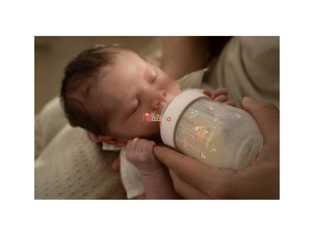 Dojčenská fľaša Little Dutch je ideálna na kŕmenie vášho bábätka od narodenia doma aj na cestách. Vďaka ergonomickému tvaru sa fľaštička pohodlne drží.