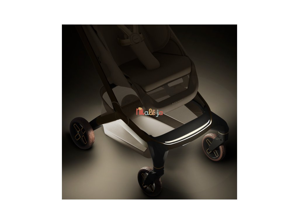 Ku kočíku je možné dokúpiť samostatne predávané madlo pre dieťa potiahnuté vegánskou koženkou.