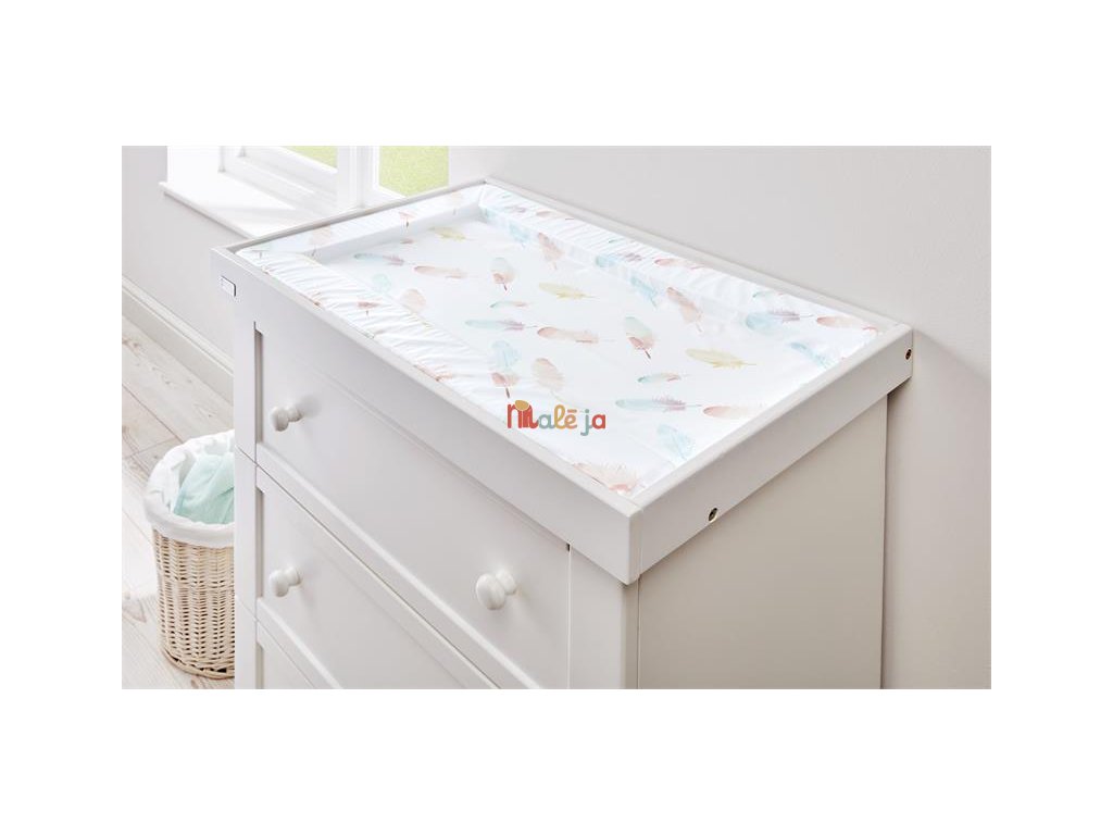 Přebalovací matrace je voděodolná a omyvatelná s povrchem z PVC bez ftalátů.
