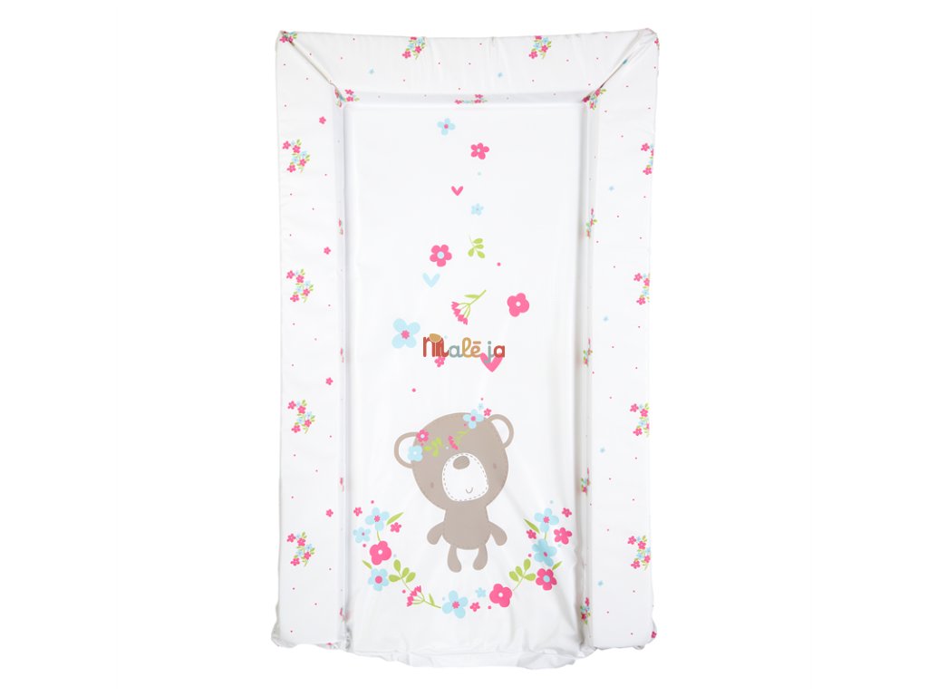 Přebalovací matrace je voděodolná a omyvatelná s povrchem z PVC bez ftalátů.