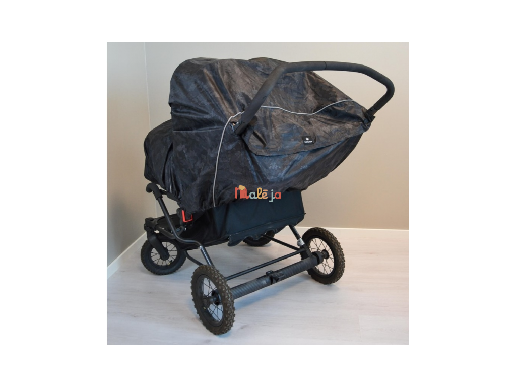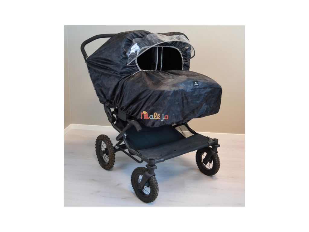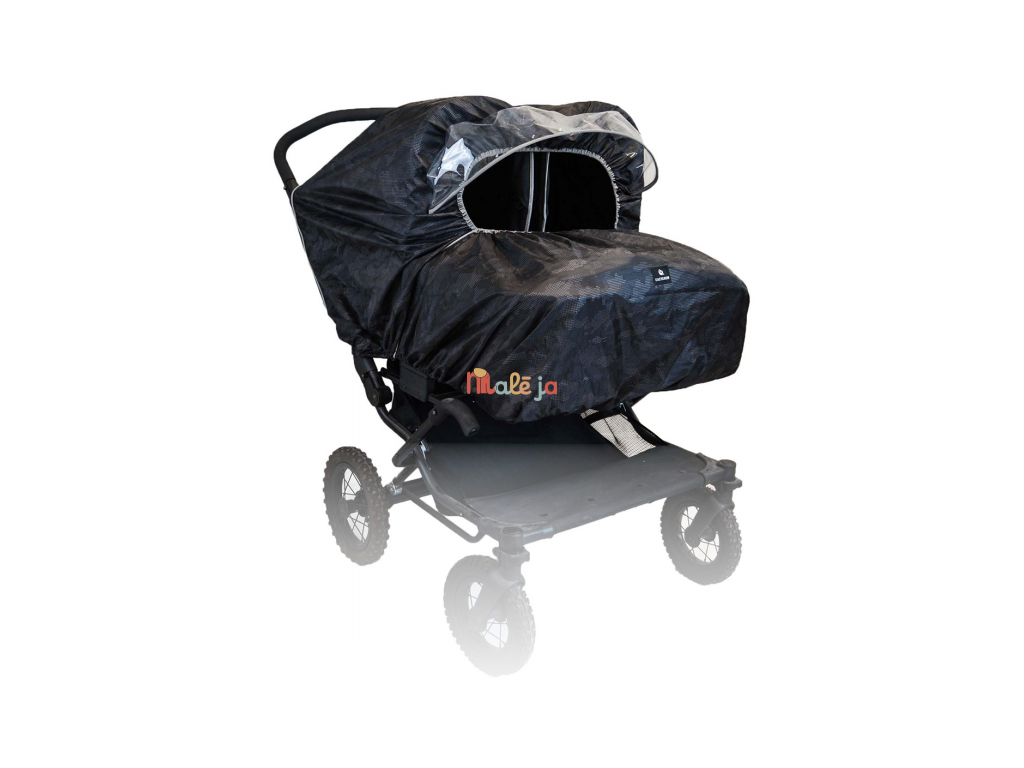 Univerzální pláštěnka na kočárek pro dvojčata je praktická ochrana proti dešti a větru. Průhledná přední clona chrání děti a zároveň nechává dovnitř kočárku proudit světlo a umožňuje výhled z kočárku. Velký přední otvor zajišťuje příjemné větrání. Pláštěnka má boční zip, díky kterému ji snadno otevřete a rychle sundáte i mokrou, a to s minimálním hlukem. Pro bezpečnější pohyb za šera je doplněná reflexními prvky. Po použití ji snadno složíte do integrované kapsy.