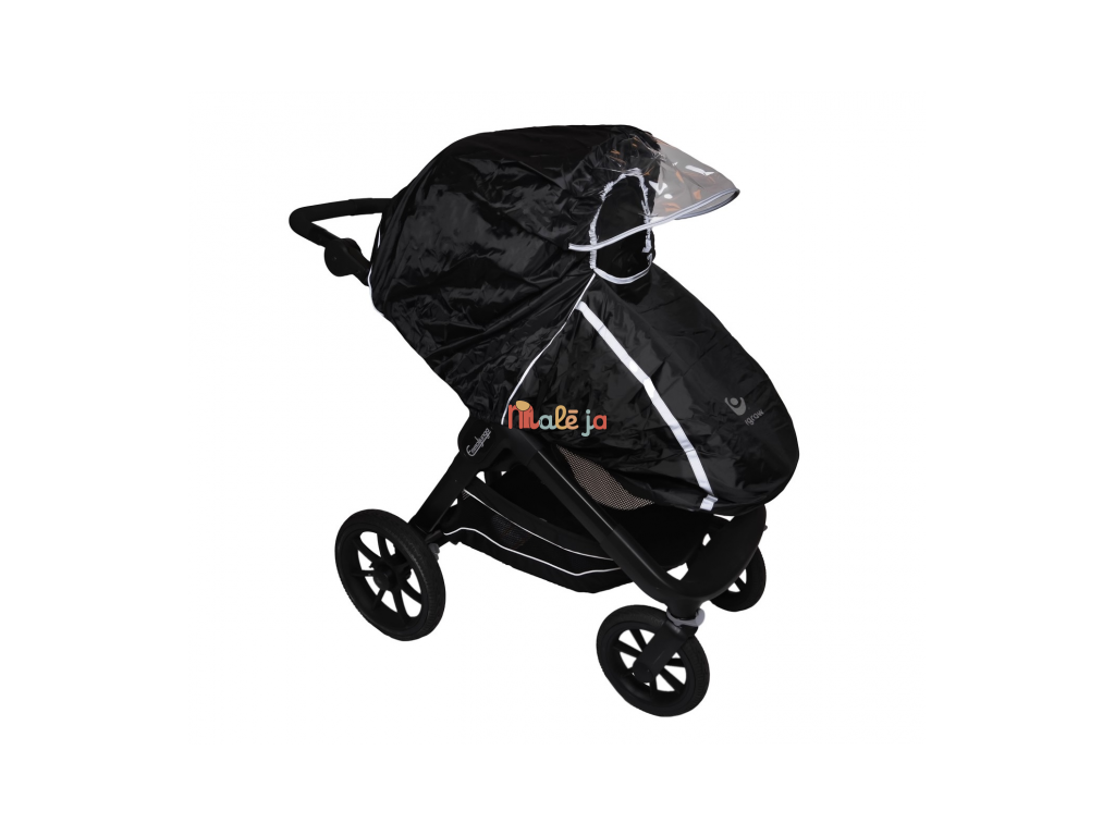 Univerzální pláštěnka na kočárek je praktická ochrana proti dešti a větru, vhodná na většinu typů kočárků. Průhledná přední clona chrání dítě a zároveň nechává dovnitř kočárku proudit světlo a umožňuje výhled z kočárku. Velký přední otvor zajišťuje příjemné proudění vzduchu. Pláštěnka má boční zip, díky kterému ji snadno otevřete a rychle sundáte i mokrou, a to s minimálním hlukem. Pro bezpečnější pohyb za šera je doplněná reflexními prvky. Po použití ji snadno složíte do integrované kapsy.