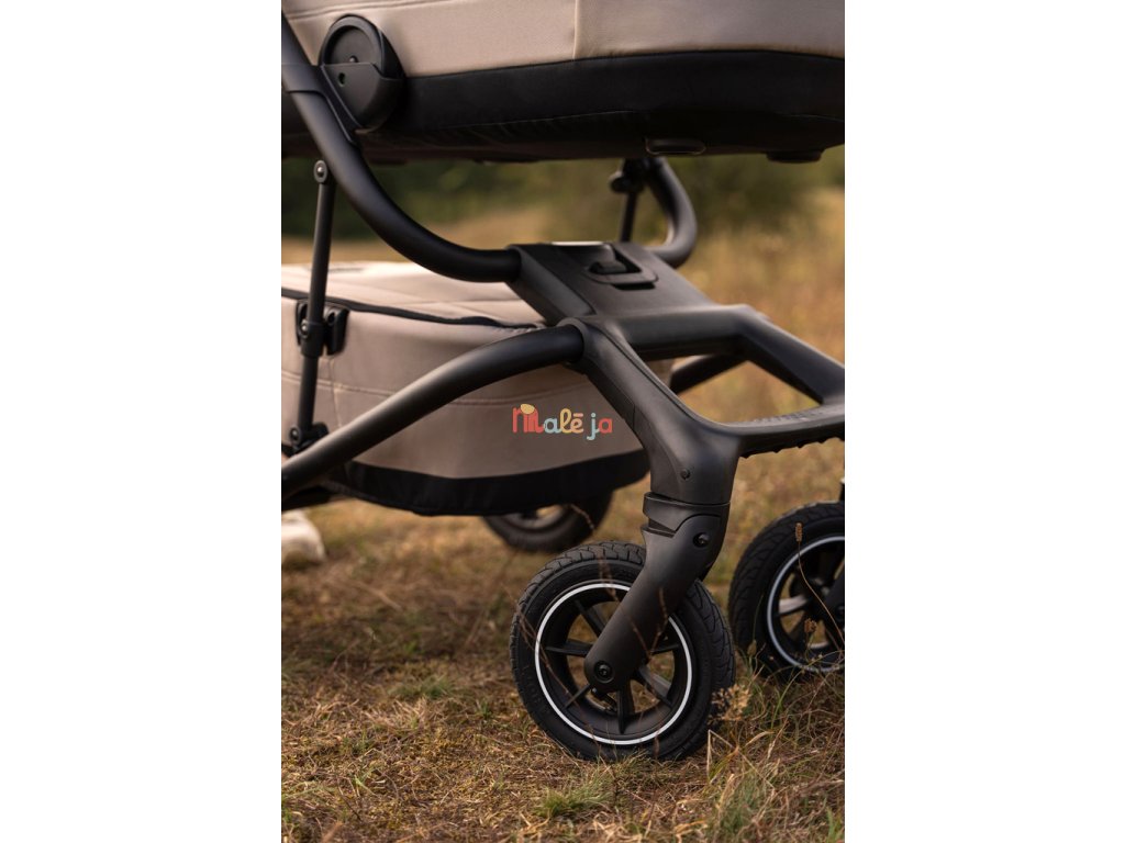 Tento kočík, navrhnutý tak, aby poskytoval pohodlný zážitok pre rodičov aj deti, je perfektnou voľbou pre rodiny, ktoré milujú objavovanie. Priestranný, pohodlný a luxusný kočík Jimmey Explore sa ľahko ovláda a je ideálny pre všetky typy terénu. Jeho nafukovacie pneumatiky z neho robia perfektnú kombináciu pohodlia, všestrannosti a odolnosti. Či už sa pohybujete po mestských uliciach alebo idete po prírodných chodníkoch, tento kočík zaistí oboje a vy a vaše dieťa môžete ľahko objavovať svet. Pozývame vás, aby ste sa vydali do sveta a znovu ho objavili očami vášho dieťaťa. Cestovať, objavovať a pohybovať sa spoločne. Ak chcete vytvoriť nové puto a celoživotné spomienky, užite si tento zážitok v krásnom svete okolo vás s kočíkom Jimmey Explore.