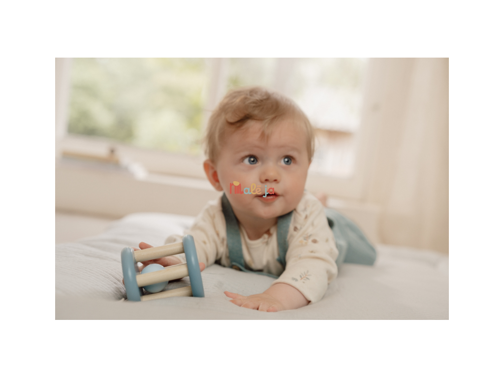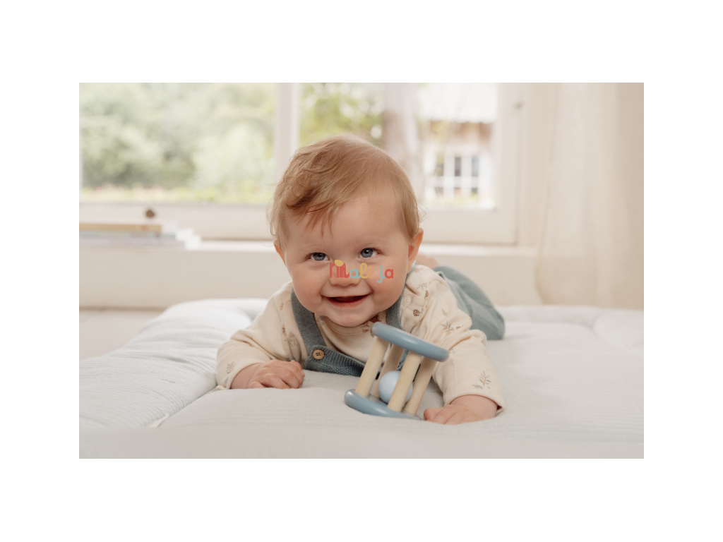 Rozkošná drevená hrkálka s guličkou v klietke dokonale padne do každej detskej ručičky. Hračka podporuje koordináciu rúk a očí.