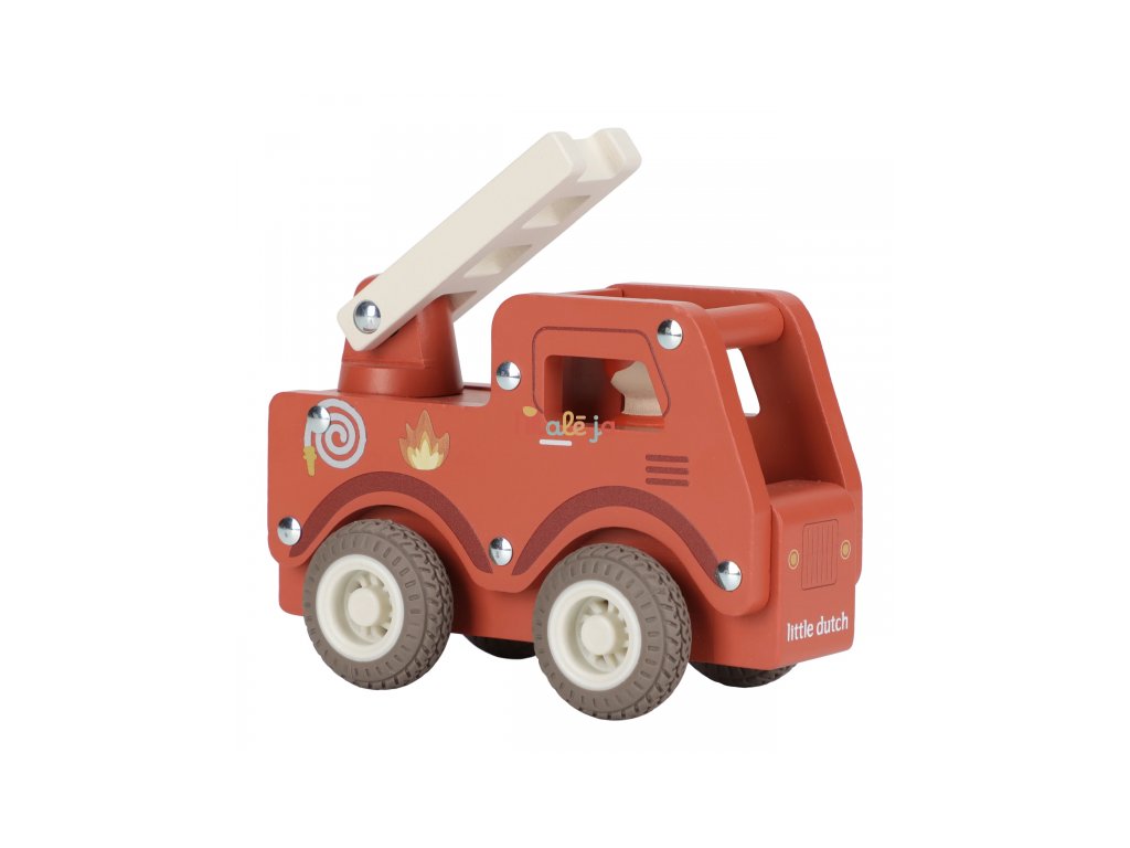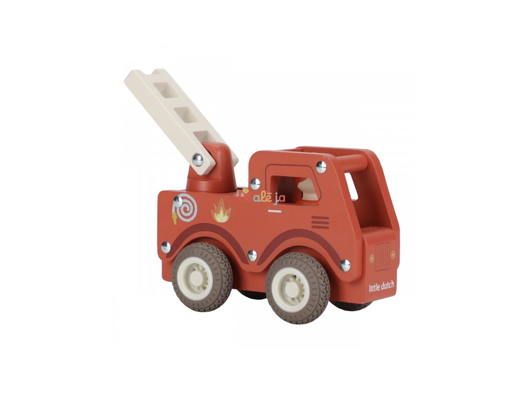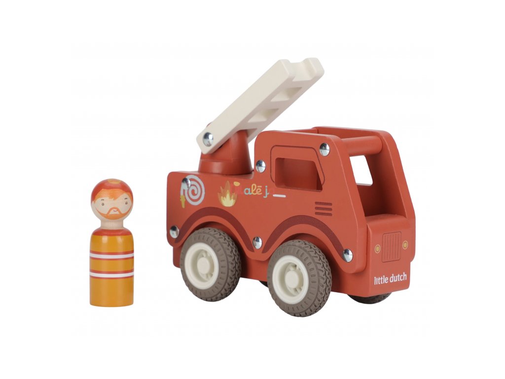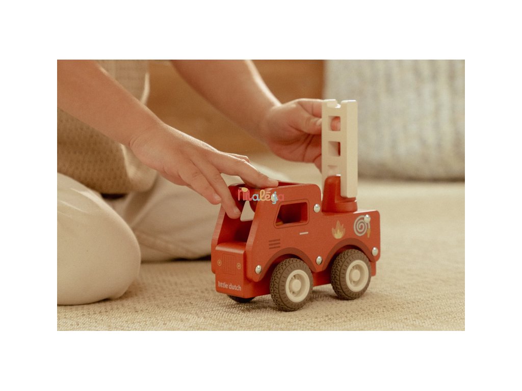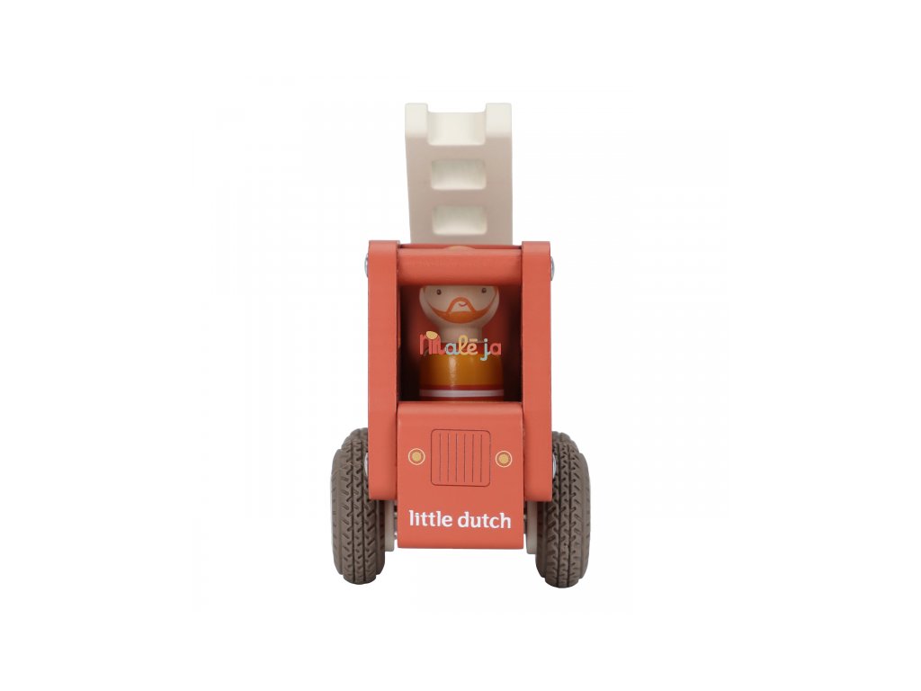 S týmto dreveným hasičským autom budete vždy pripravení vyraziť do akcie! Vozidlo je vybavené výsuvným rebríkom a odvážnym hasičom v podobe drevenej figúrky. Vďaka robustnej konštrukcii a gumovým pneumatikám je jazda plynulá a bezpečná na každom povrchu. Otvorený dizajn umožňuje deťom ľahké uchopenie a tlačenie, a preto je hasičské auto ideálne pre malé ruky aj veľkú fantáziu. Zachráňte zvieratká zo stromov, uhaste požiar a ochraňujte svoje mesto! Vyrobené z odolného FSC certifikovaného dreva. Vhodné pre deti od 18 mesiacov.