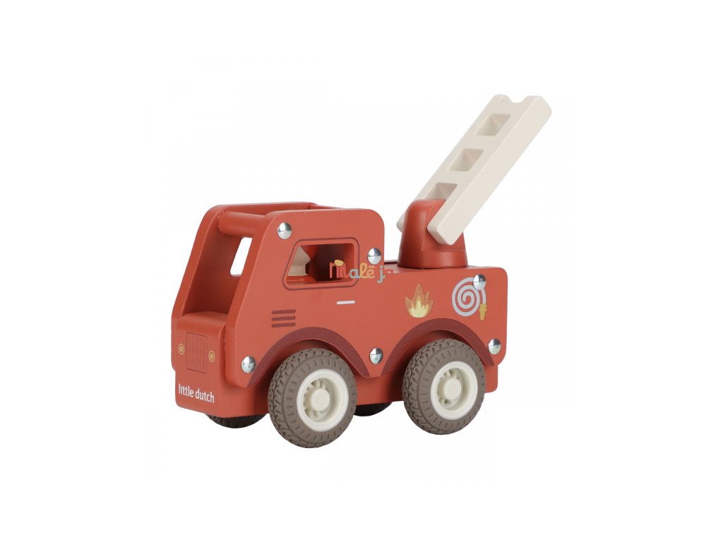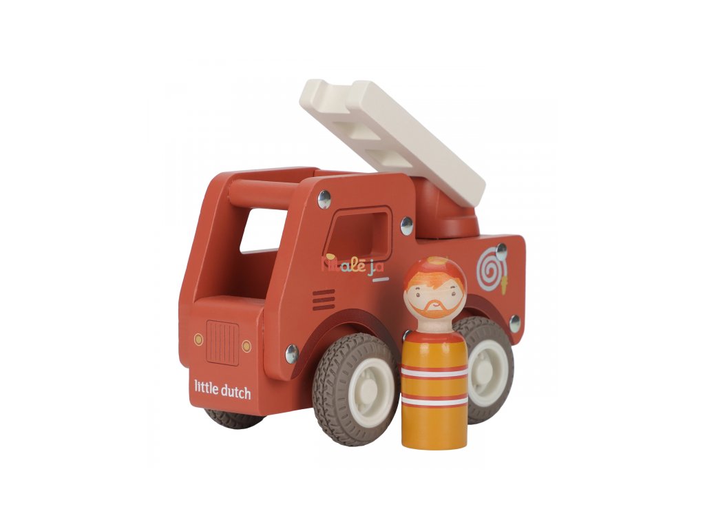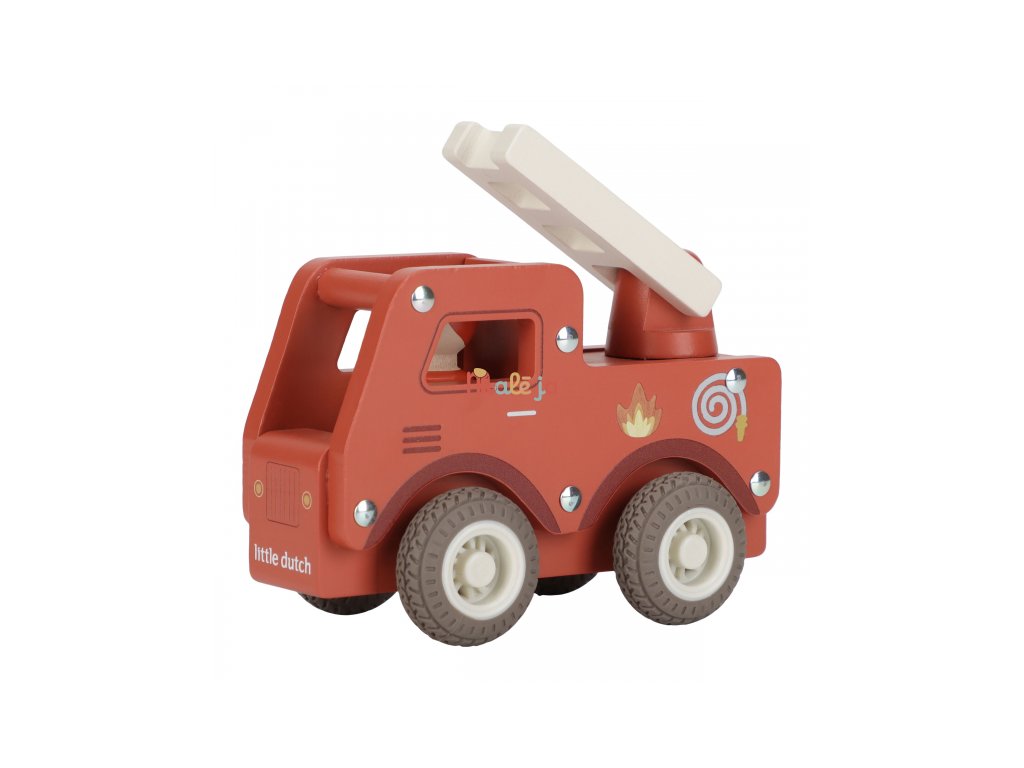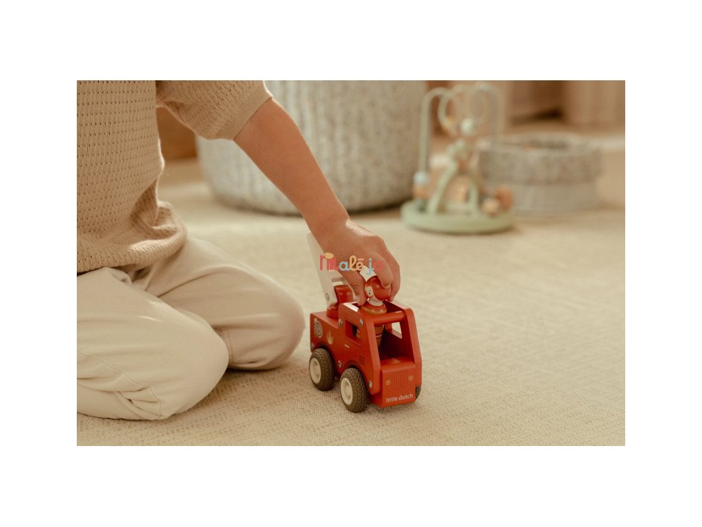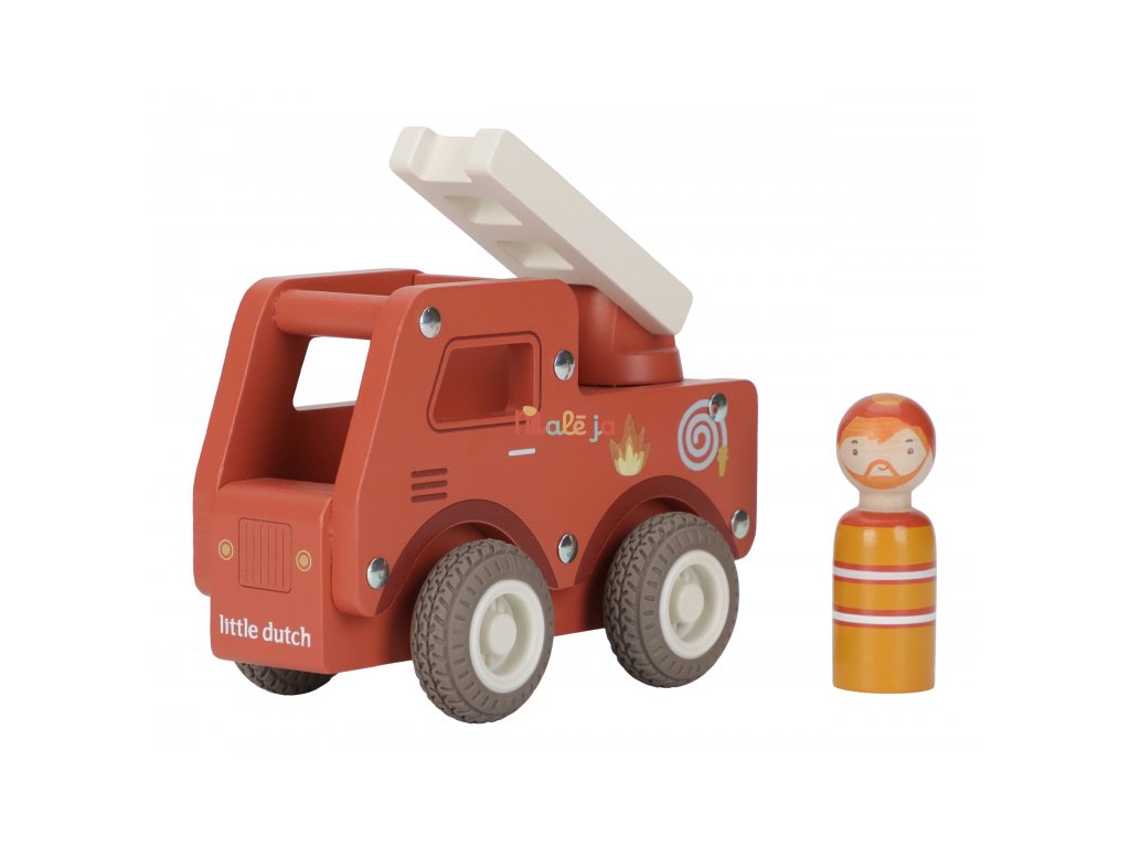 S týmto dreveným hasičským autom budete vždy pripravení vyraziť do akcie! Vozidlo je vybavené výsuvným rebríkom a odvážnym hasičom v podobe drevenej figúrky. Vďaka robustnej konštrukcii a gumovým pneumatikám je jazda plynulá a bezpečná na každom povrchu. Otvorený dizajn umožňuje deťom ľahké uchopenie a tlačenie, a preto je hasičské auto ideálne pre malé ruky aj veľkú fantáziu. Zachráňte zvieratká zo stromov, uhaste požiar a ochraňujte svoje mesto! Vyrobené z odolného FSC certifikovaného dreva. Vhodné pre deti od 18 mesiacov.