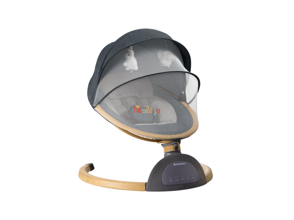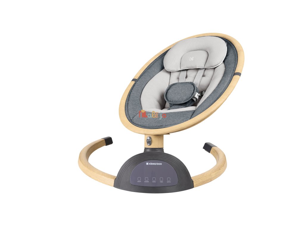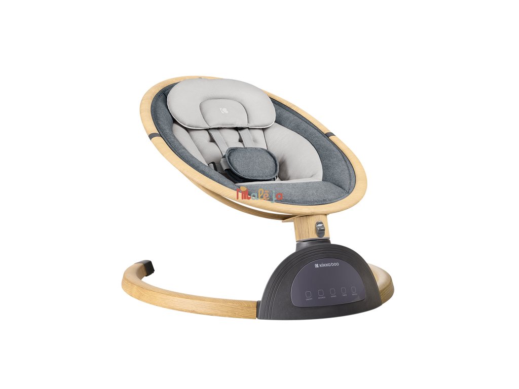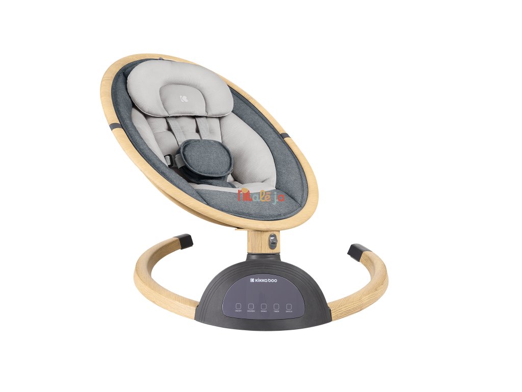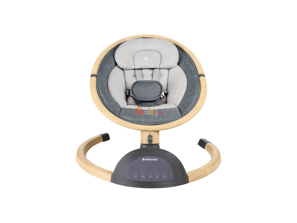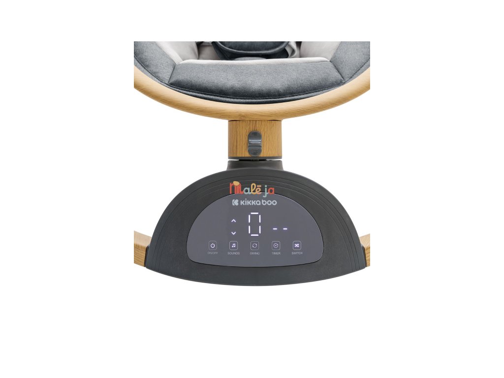 Elegantní houpací lehátko KikkaBoo Ashlee poskytne vašemu miminku maximální pohodlí a bezpečí při odpočinku, hraní i pozorování světa kolem sebe. Díky lehkému hliníkovému rámu s povrchovou úpravou v designu dřeva a luxusním textiliím nabízí tichý pohyb ze strany na stranu, který napodobuje přirozené houpání v náručí rodiče. Zábava a relax v jednom Možnost nastavení pěti úrovní houpání Hudební panel s 10 melodiemi a regulací hlasitosti Bluetooth a USB připojení – přehrávejte vašemu miminku oblíbené písničky Dotykový displej a dálkový ovladač pro snadné nastavení Časovač: 8, 15 nebo 30 minut Pohodlí a bezpečí Nastavitelná opěrka zad pro pohodlnou polohu při spaní i bdění 5-bodový bezpečnostní pás Protiskluzové nožičky pro maximální stabilitu Možnost aretace pohybu pro použití jako klasické lehátko Ochrana a zábava navíc Odnímatelná stříška s moskytiérou a sluneční clonou Závěsné hračky pro první hru a objevování Napájení: AC adaptér v balení Rozměry: 71 × 63 × 49,5 - 71 cm Hmotnost: 3,4 kg Materiál konstrukce: hliník Vhodné pro děti od narození do 9 kg.