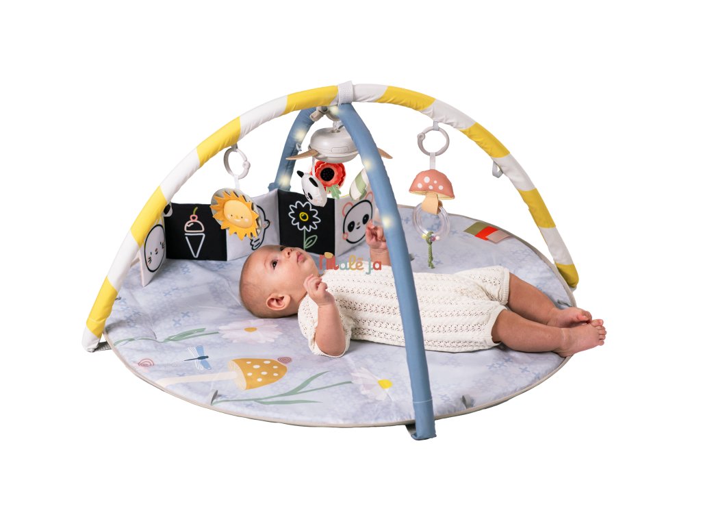 Interaktívna hracia deka Taf Toys s osvetlenou hrazdou, hudobným kolotočom a množstvom rôznorodých aktivít je dokonalým zmyslovým ihriskom pre bábätká. Podnecuje rozvoj jeho jednotlivých zmyslov, motoriky a zvedavosti už od narodenia.