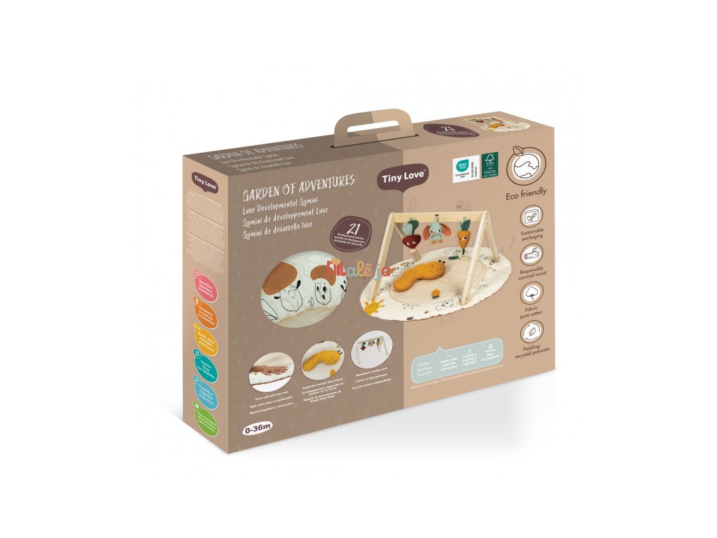 Krásna hracia deka s drevenou hrazdou Tiny Love, navrhnutá s láskou a starostlivosťou odborníkmi na vývoj dieťaťa, povzbudzuje dieťa k objavovaniu a hraniu. Deka ponúka zážitkové prostredie plné vyváženej stimulácie a rozpráva kúzelný príbeh inšpirovaný prírodou.