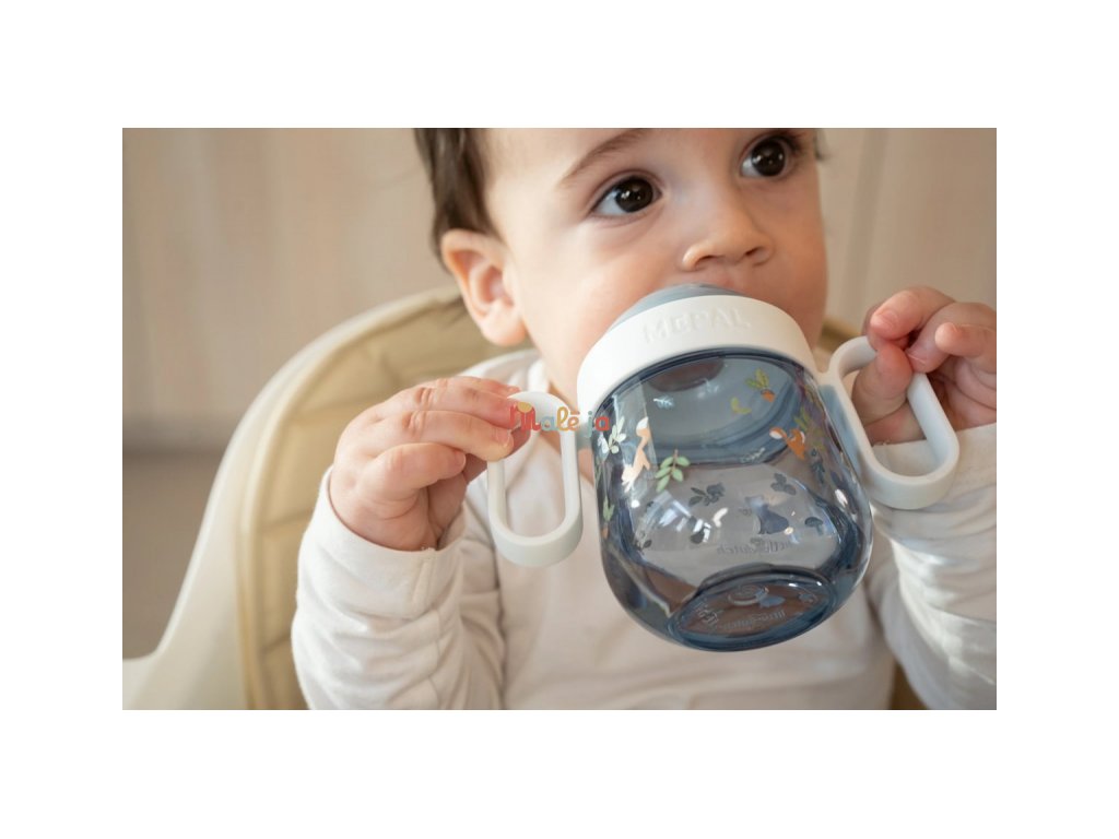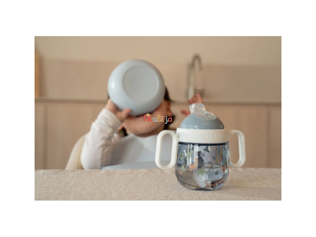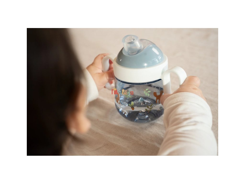 Hrnček s krásnou potlačou je vybavený mäkkým silikónovým náustkom pre pohodlné pitie a držadlami pre ľahké držanie.Viečko bráni vytečeniu obsahu hrnčeka pri prenášaní.