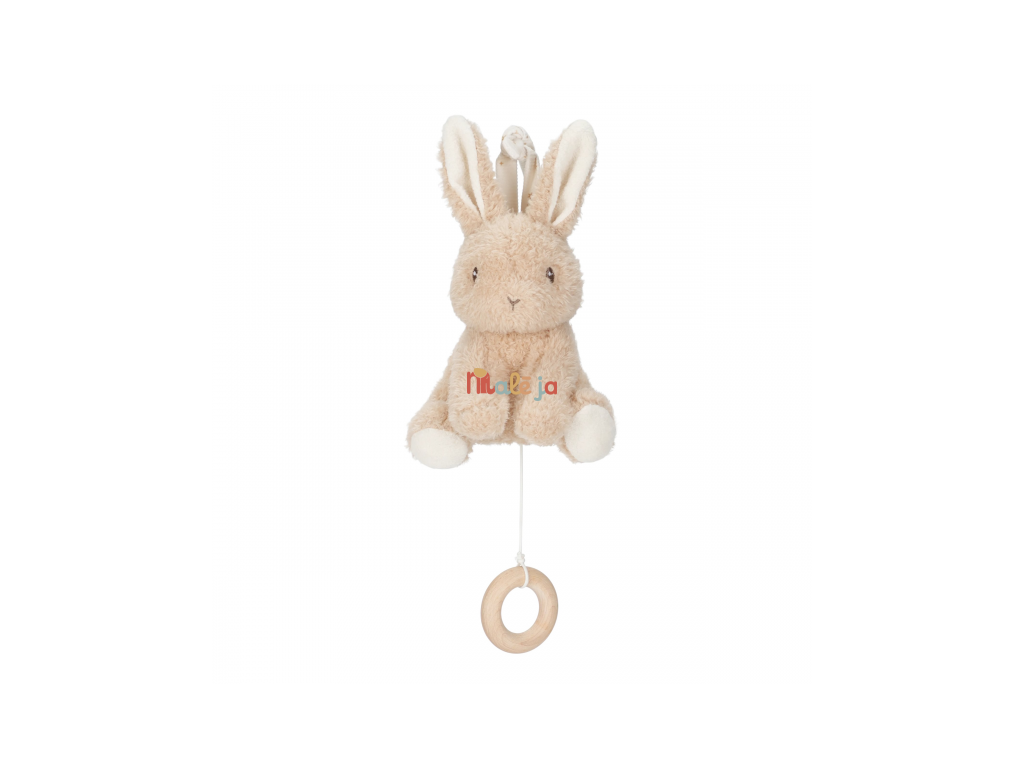 Závesný plyšový králik v sebe skrýva naťahovací hudobný box s príjemnou uspávankou, ktorá vaše bábätko upokojí a pomôže mu zaspať. Králika ľahko zavesíte blízko postieľky.