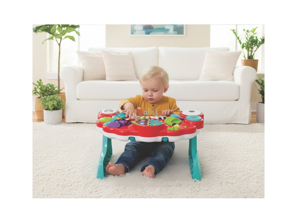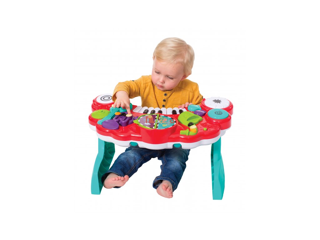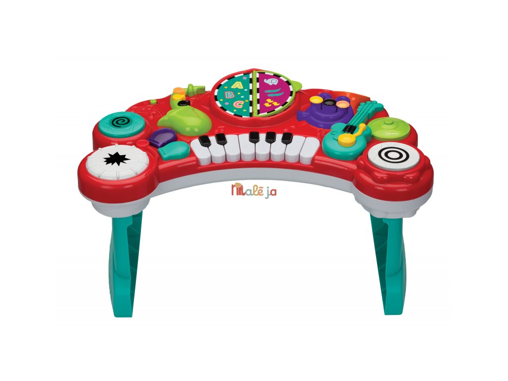 Hudobný pult Infantino 10v1 deťom približuje hudbu už od raného veku. Pult ponúka 10 rôznych hudobných nástrojov vrátane klávesov s veľkými tlačidlami pre ľahké hranie malými detskými prstíkmi. Súčasťou je aj obojstranný „spevník“, ktorý po otočení automaticky prehráva rôzne veselé skladby a rozširuje možnosti hrania. Pult prehráva viac ako 25 melódií a zvukových efektov. Hudobný pult je ideálny pre rozvoj hudobného cítenia, koordinácie a kreativity. Rozmery: 57,5 × 14,4 × 35,6 cm Vymeniteľné batérie 2xAA 1,5V súčasťou výrobku. Vhodné pre deti od 12 do 36 mesiacov.