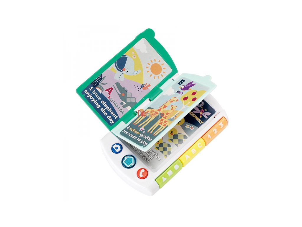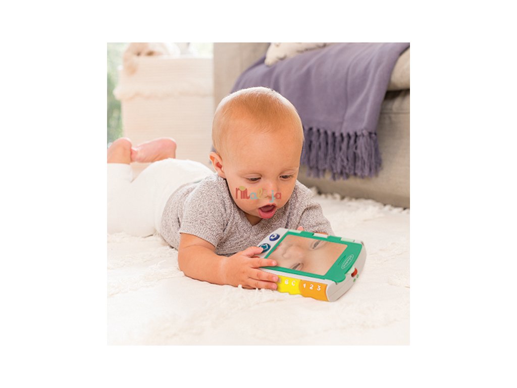 Zábavná interaktívna hračka Infantino, ktorá spája telefón na hranie a malú obrázkovú knižku plnú prekvapení. Na prednej strane má veľké zrkadlo a tlačidlá, s ktorými sa dieťa môže hrať na volanie alebo fotenie. Po otvorení stránok sa spustí vzdelávací obsah – hračka prečíta jednoduché vety a nabáda deti k objavovaniu tvarov, farieb a čísel. Hudobná časť ponúka 4 originálne pesničky, 43 povzbudzujúcich fráz a 6 zábavných zvukových efektov. Všetky hovorené časti sú v angličtine. Vymeniteľné batérie 2xAAA 1,5V súčasťou výrobku. Vhodné pre deti od 6 do 36 mesiacov.