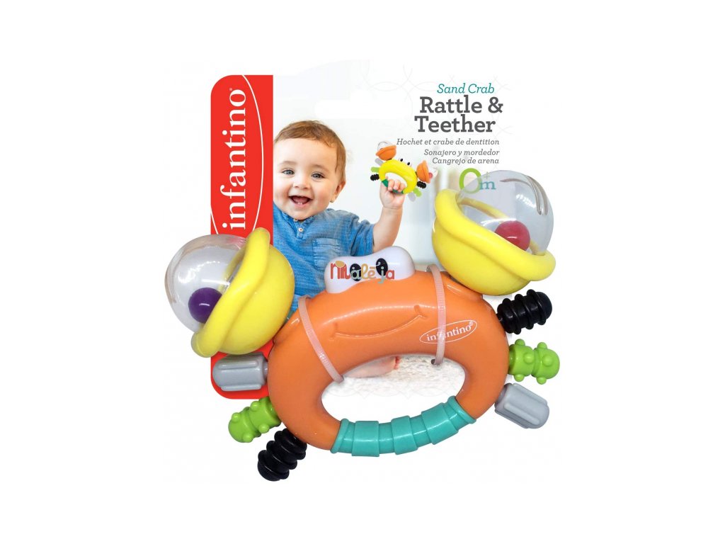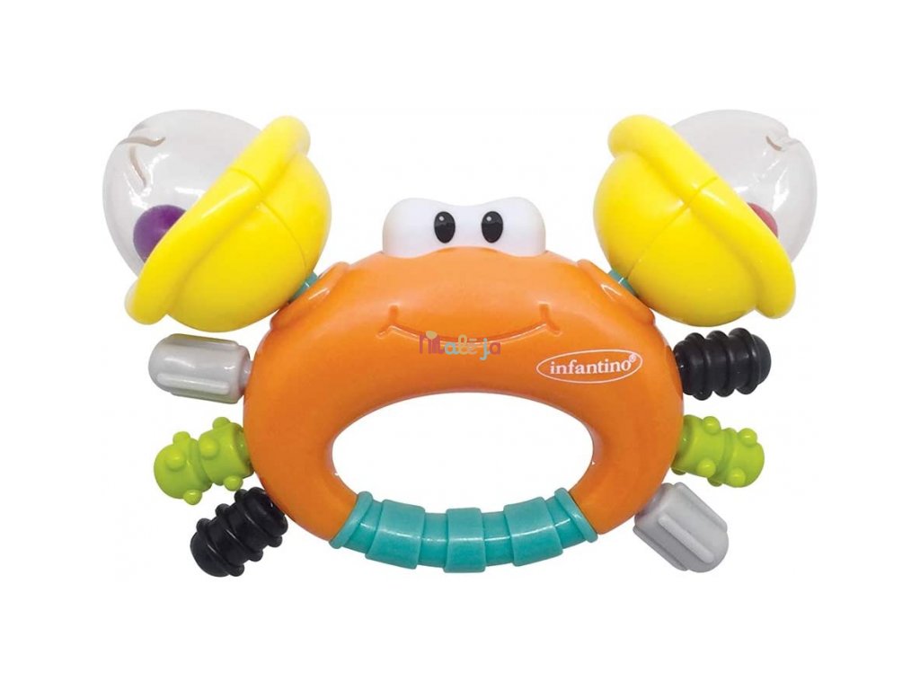 Bezpečná hrkálka a hryzátko dieťa zabaví aj uľaví jeho citlivým ďasnám pri prerezávaní zúbkov. Rôznorodé textúry podnecujú dieťa k skúmaniu rukami aj ústami. Tvar hračky umožňuje ľahké uchopenie detskými ručičkami.