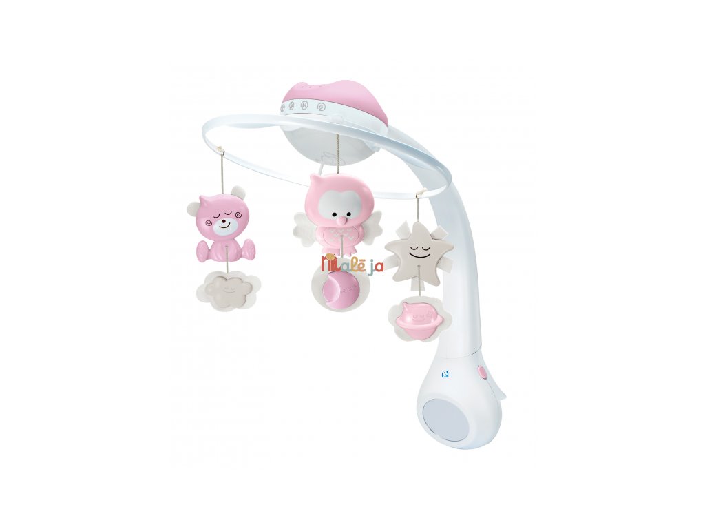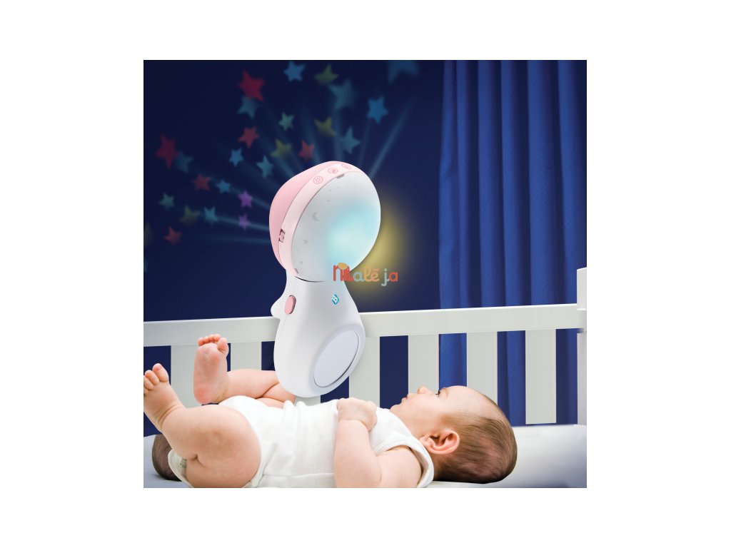 Svetelný projektor premieta na stenu či strop hviezdičky a jemne tak osvieti detskú izbu. Spolu s upokojujúcou melódiou pomôže vášmu dieťaťu v pokoji zaspávať.