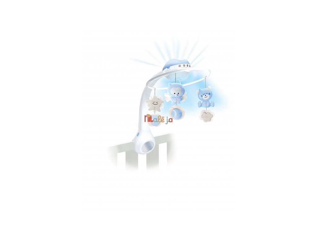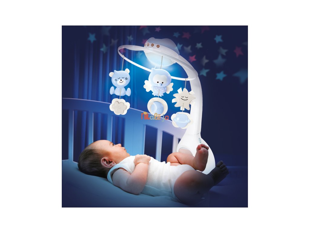 Svetelný projektor premieta na stenu či strop hviezdičky a jemne tak osvieti detskú izbu. Spolu s upokojujúcou melódiou pomôže vášmu dieťaťu v pokoji zaspávať.