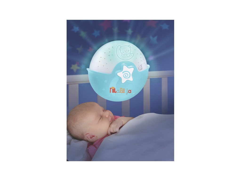 Nočná lampička s hudbou a svetelným projektorom pre pokojné zaspávanie vášho dieťaťa. Lampička premieta na stenu či strop hviezdičky a jemne tak osvieti detskú izbu.