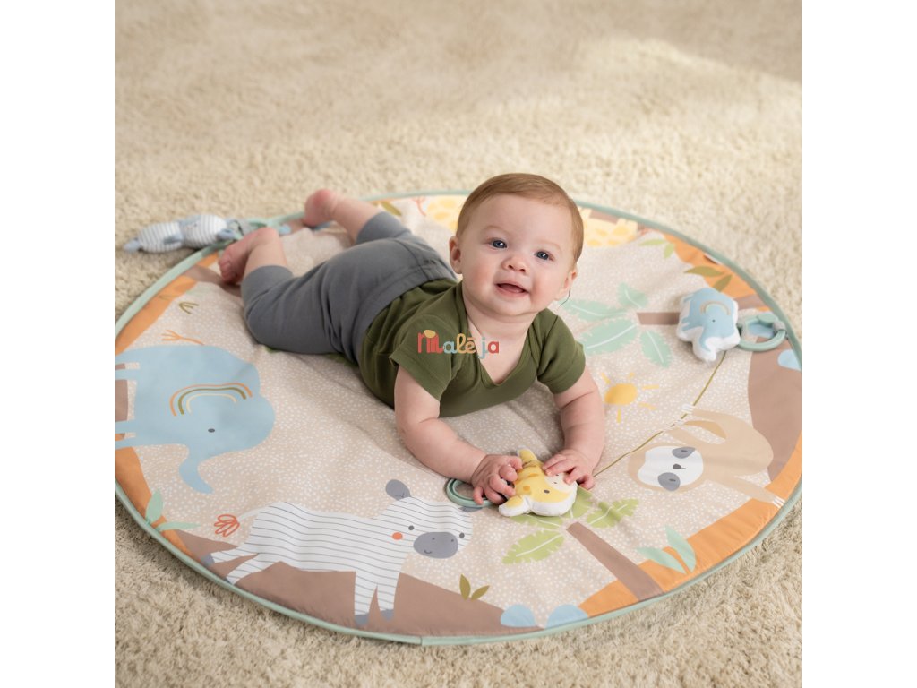 Vytvorte vášmu bábätku bezpečné a hravé prostredie na podložke, ktorá rastie spolu s ním! Táto deka na hranie Wonder & Wood™ ponúka tri fázy hry: ležanie, čas na brušku a v sede. Navyše moderný drevený dizajn s A – rámom sa hodí do každého interiéru a zložíte ho bez náradia – ideálny na doma aj na cesty. Všetky hračky sú navrhnuté pre rozvoj zmyslov, poznávanie tvarov, textúr a zvukov. Vďaka C-krúžkom ich ľahko odpojíte a pripevníte na kočík, autosedačku alebo stoličku. Ideálna ako darček na baby shower, narodeniny či len tak pre každodenné pohodlie.