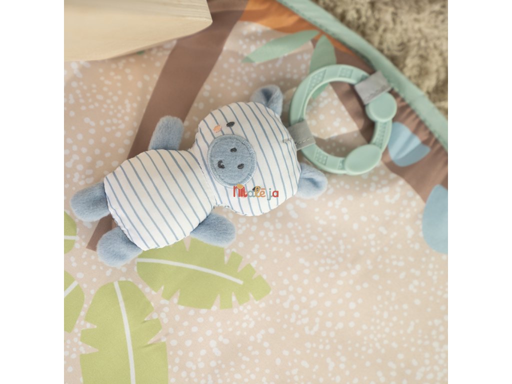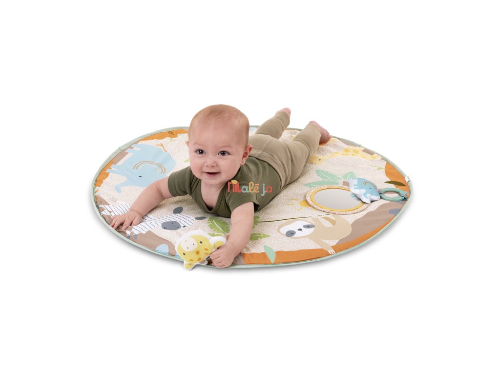- Jednoduché čistenie: podložku možno utrieť, hračky sú látkové