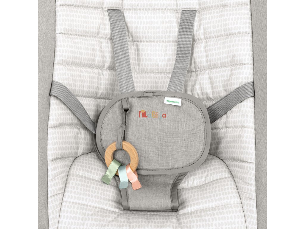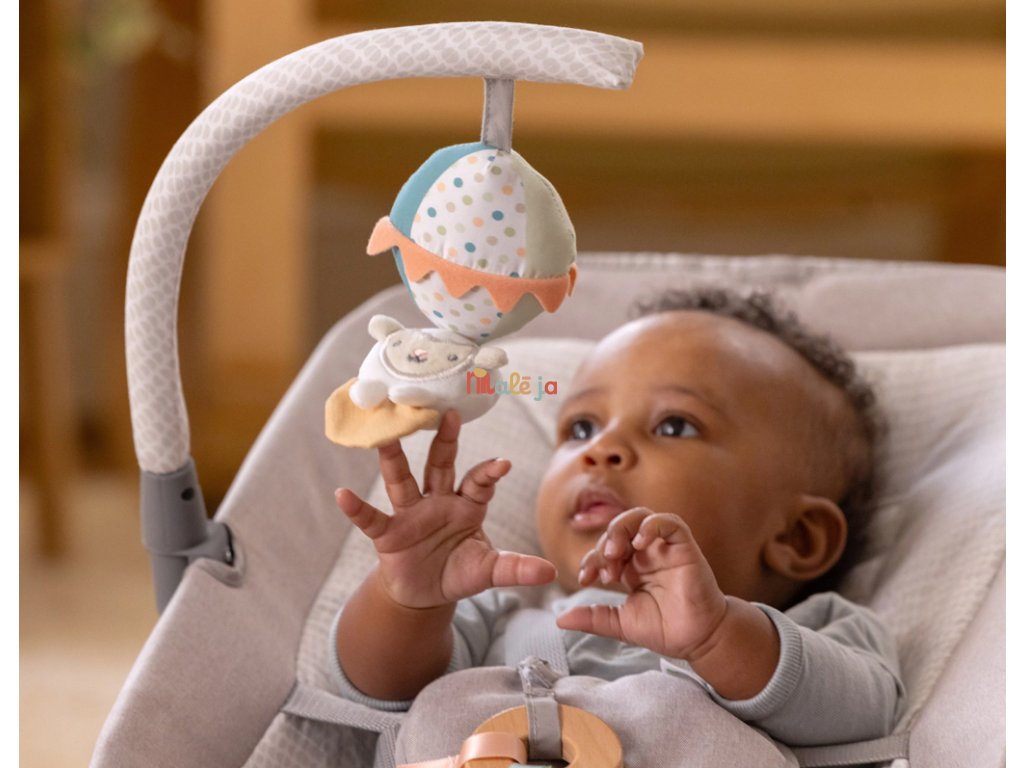 Ovládanie je intuitívne vďaka technológii GentleTouch™, ktorú hravo zvládnu rodičia, starí rodičia aj opatrovatelia. Vaše dieťa sa môže zabaviť s odnímateľnou hrazdičkou, na ktorej visí plyšový balón a drevený krúžok so štítkami na skúmanie.