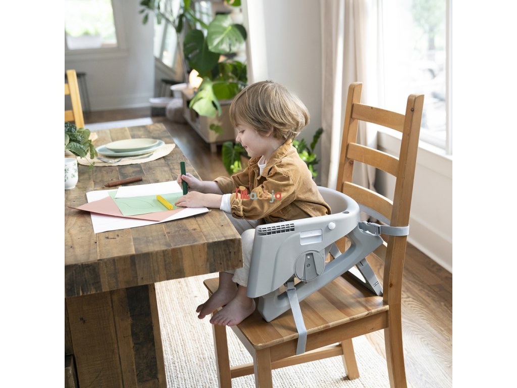 - Ergonomický dizajn 90-90-90 zabezpečuje, aby dieťa sedelo s členkami, kolenami a bokmi v pravom uhle – ideálne pre trávenie; nastaviteľná opierka na nohy pre väčšie pohodlie