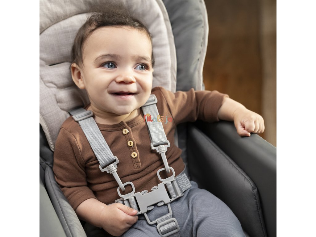 - Ergonomický dizajn 90-90-90 zabezpečuje, aby dieťa sedelo s členkami, kolenami a bokmi v pravom uhle – ideálne pre trávenie; nastaviteľná opierka na nohy pre väčšie pohodlie