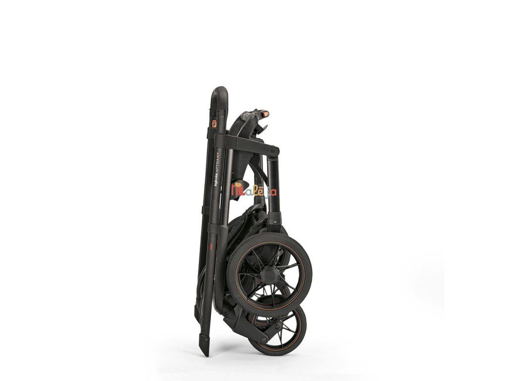 Podvozok APTICA XT Je neuveriteľne praktický! Rozkladá sa a skladá v okamihu jednou rukou, stojí samostatne, keď je zložený, a rukoväť sa pritom nedotýka zeme, takže ruky neprichádzajú do kontaktu s nečistotami. Teleskopická rukoväť podvozku, nastaviteľná do 4 polôh, sa prispôsobí každej výške postavy.
