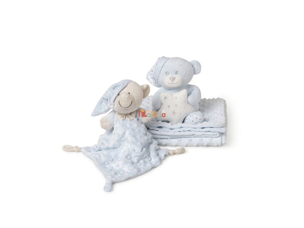 Nádherný darček balený v darčekovej krabičke s maznáčikom, vhodný pre narodené bábätká i väčšie deti do troch rokov, ktoré si veľkosť deky užijú. Deka je jemná k detskej pokožke.