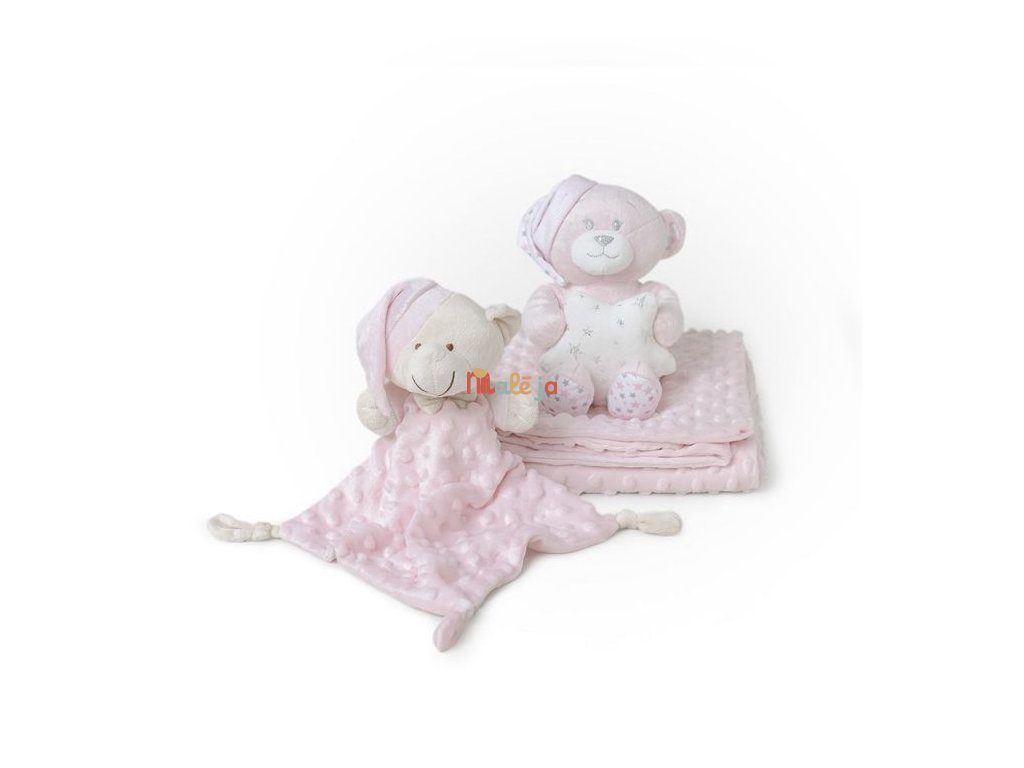 INTERBABY Deka mäkká guličky + prítulka + medvedík - RŮŽOVÁ