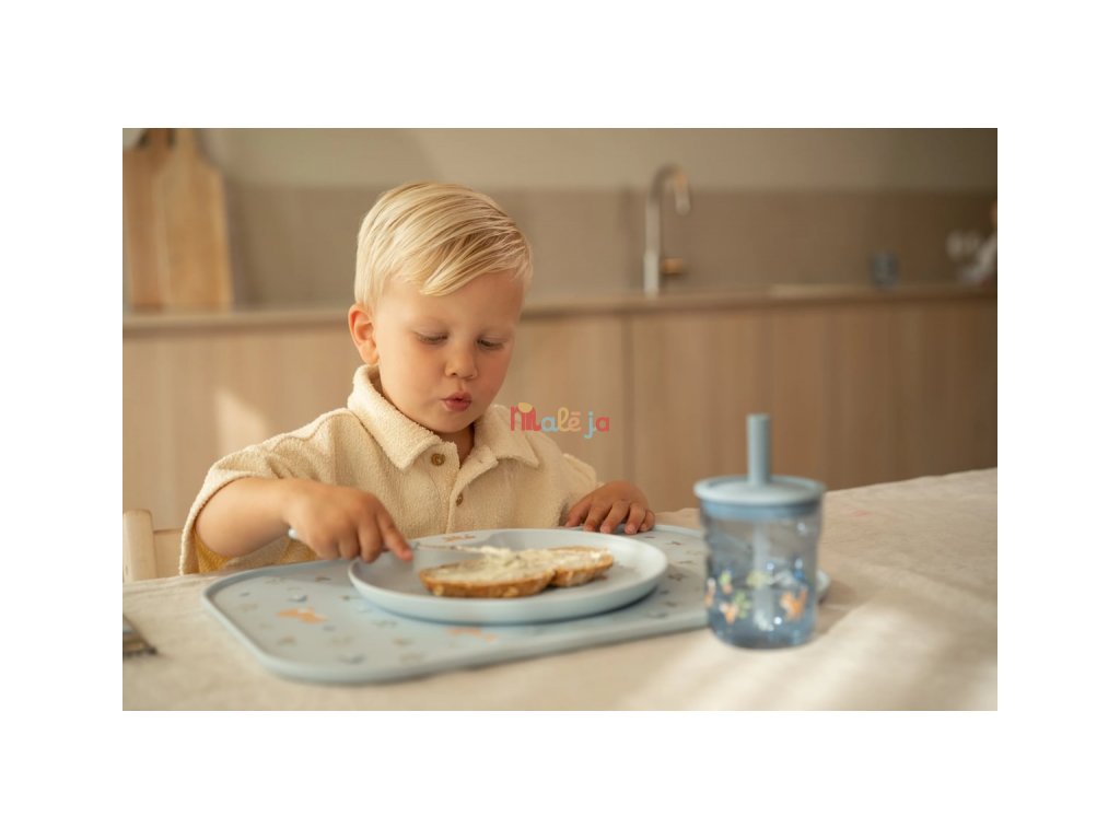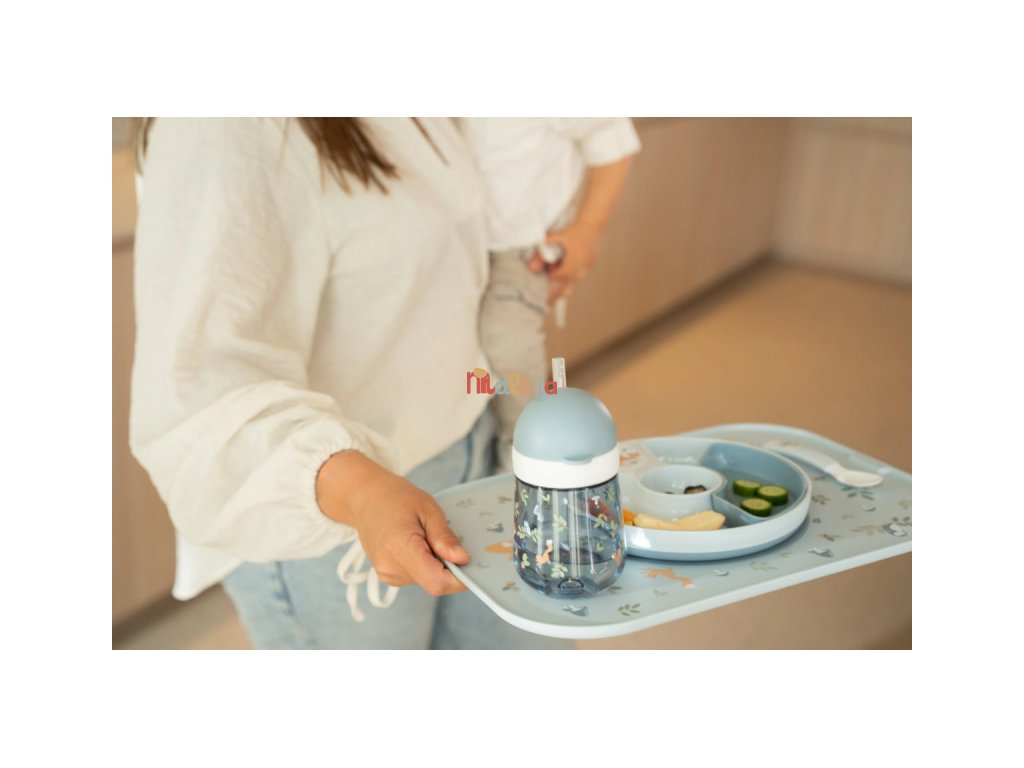 Jedálenský podnos s krásnou potlačou je ideálny pre samostatné stolovanie dieťaťa, vďaka odnímateľnej protišmykovej podložke pomáha udržať tanier či misku na mieste. Je vyrobený z mimoriadne odolného plastu.