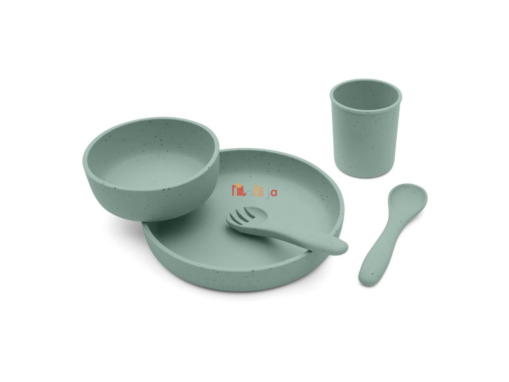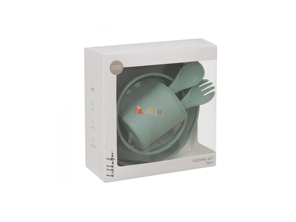 5-dílná jídelní sada KikkaBoo Platinum Silicone nabízí vše, co potřebujete pro samostané stolování vašeho dítěte od 6 měsíců: Talíř se zvýšeným okrajem pro snadné nabírání Kelímek na pití o velikosti vhodné pro dětské ruce Lžička a vidlička ergonomického tvaru s měkkými hranami šetrnými k dětským dásním Miska pro polévku, kaši apod. Prémiový silikonový materiál: Vyrobeno ze 100 % potravinářského platinum silikonu – měkký, pružný materiál bez zápachu Bez BPA, hypoalergenní a velmi odolný Odolný teplotám od –40 °C do 230 °C – vhodné do mrazáku, mikrovlnné trouby i sterilizátoru Snadná údržba: Vhodné do myčky, mikrovlnné trouby i sterilizátoru Snadno omyvatelný materiál – ideální pro každodenní použití doma i na cestách Rozměry: Talíř: 18,2 × 18,2 × 3 cm, 400 ml Kelímek: 7 × 7 × 8 cm, 150 ml Lžička / Vidlička: 13,8 cm Miska: průměr 13 cm, výška 6,5 cm, 230 ml Složení: 100 % platinum silikon Vhodné pro děti od 6 měsíců.