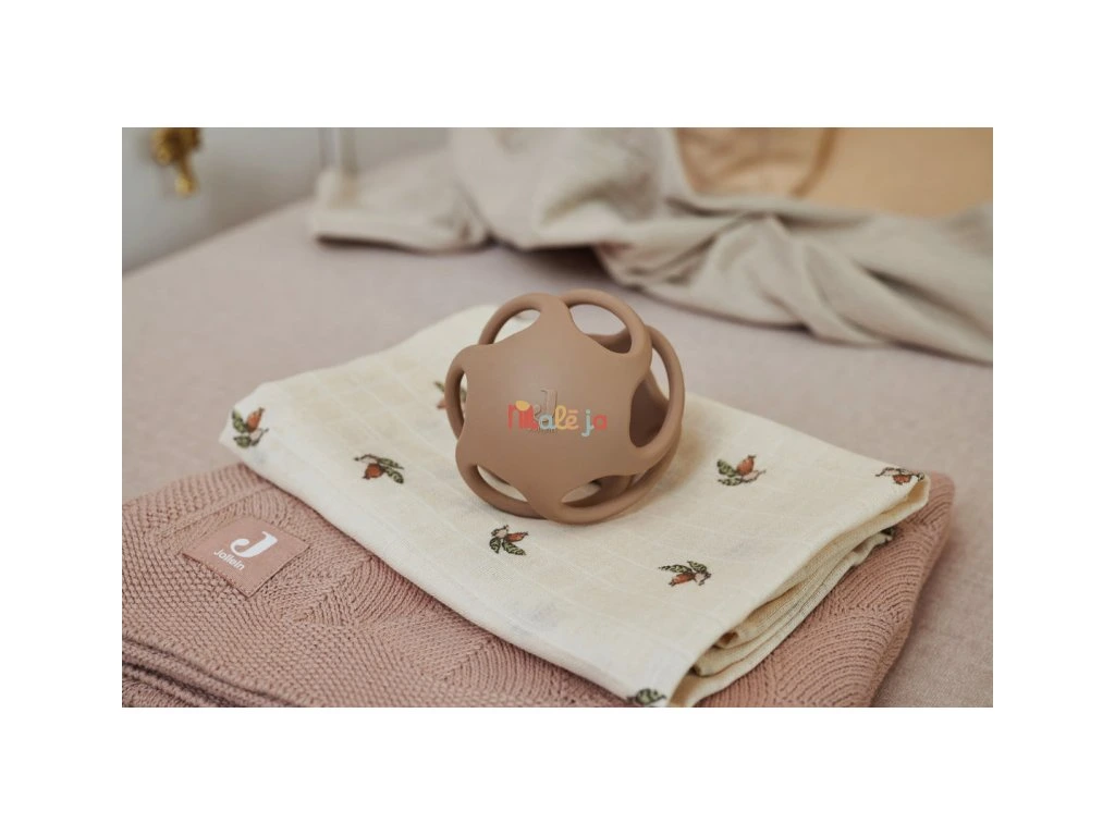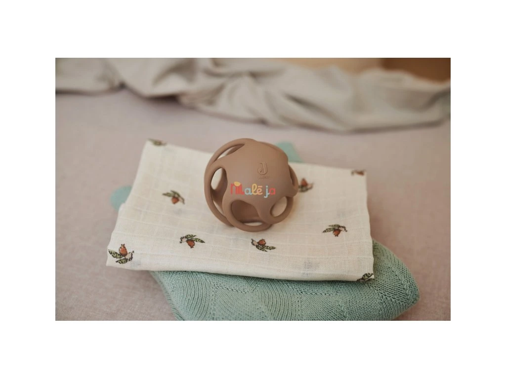 Originálne hryzátko v tvare loptičky je vyrobené z jemného silikónu príjemného na dotyk. Hryzátko uľaví citlivým detským ďasnám pri prerezávaní prvých zúbkov. V staršom veku dieťaťa hračku využijete ako loptička na hranie a kotúľanie. Rozmery: 9,5 x 9,5 cm Zloženie: 100% silikón Neobsahuje BPA ani PVC. Vhodné pre deti od narodenia.