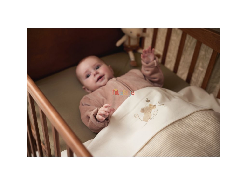 Prestieradlo z mäkkej, jemnej 100% bavlny s motívom rozkošnej myšky je ideálne ako doplnok k pletenej či fleecovej deke, ktorú prikrývate bábätko v košíku či postieľke. Chráni deku pred znečistením podobne ako klasické obliečky.