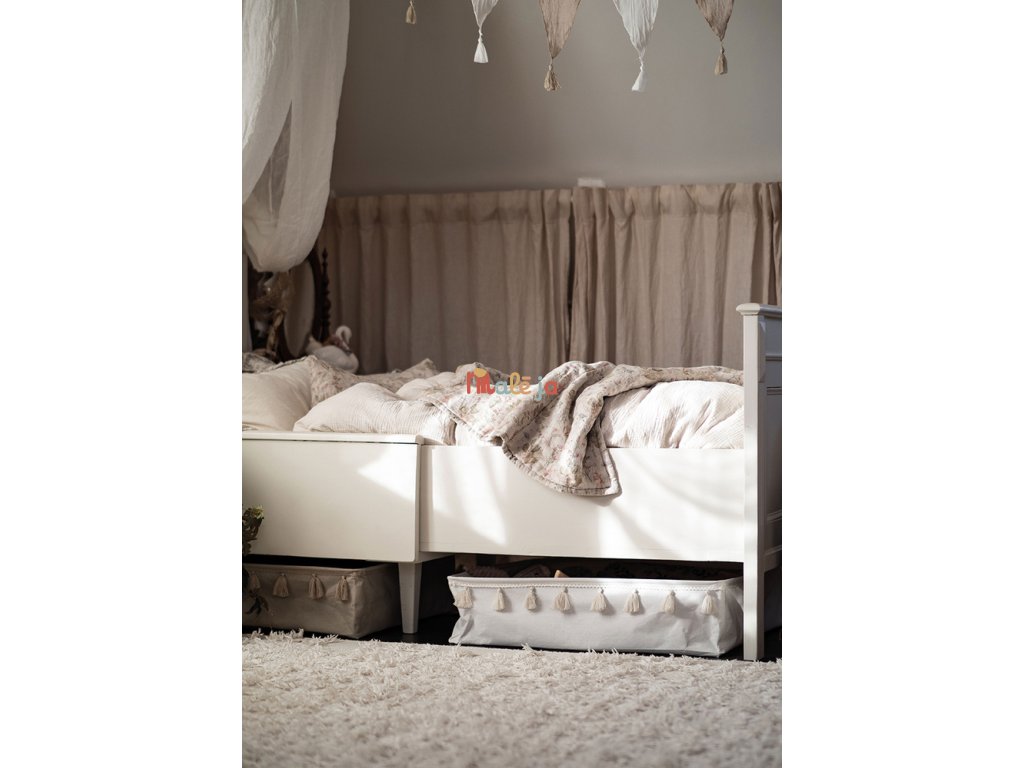 Tento praktický úložný priestor je vyrobený tak, aby mal dokonalý tvar a veľkosť, aby sa zmestil pod posteľ. Vyrobené z polyesteru a bavlny a dostupné v dvoch rôznych farbách. Úložný priestor uľahčuje triedenie, organizáciu a skladovanie, takže sa pri upratovaní nebudete musieť stresovať. Napríklad ukladanie oblečenia alebo hračiek pod posteľ je teraz jednoduché štýlovým spôsobom. Keď sa úložný priestor postele nepoužíva, možno ho jednoducho stlačiť a zaberie menej miesta. Jedna strana úložného priestoru je zdobená krásnymi strapcami, vďaka čomu je ideálna otočená smerom von.