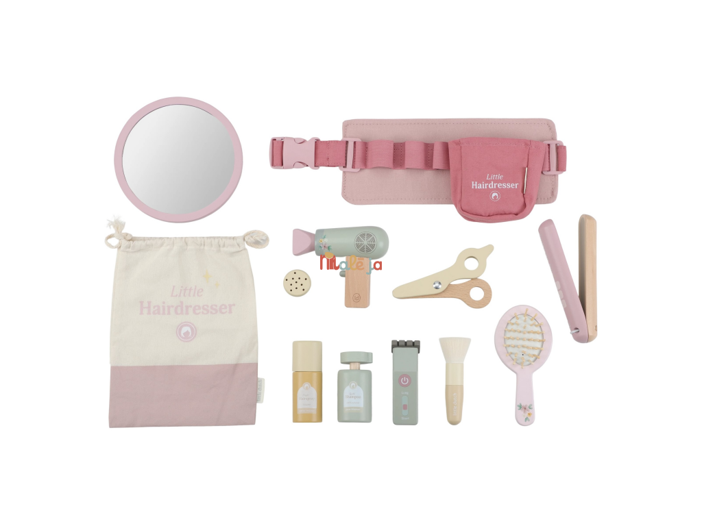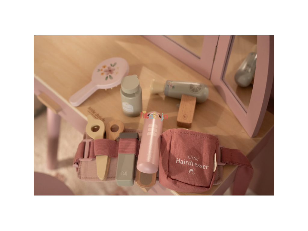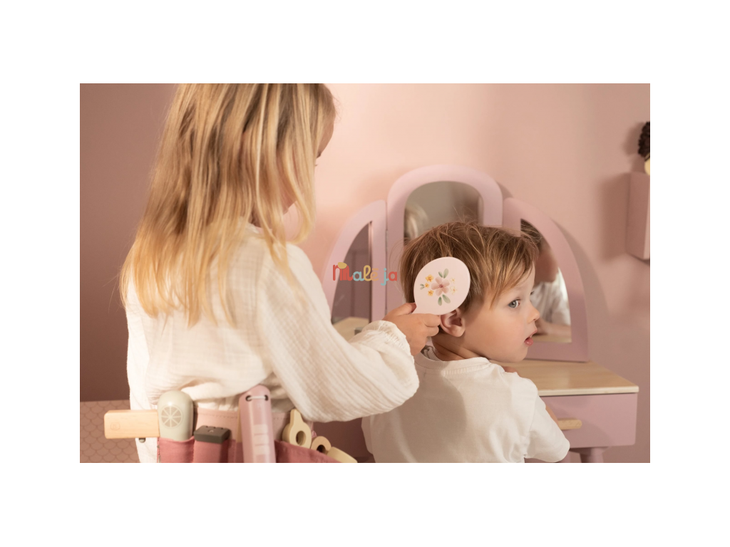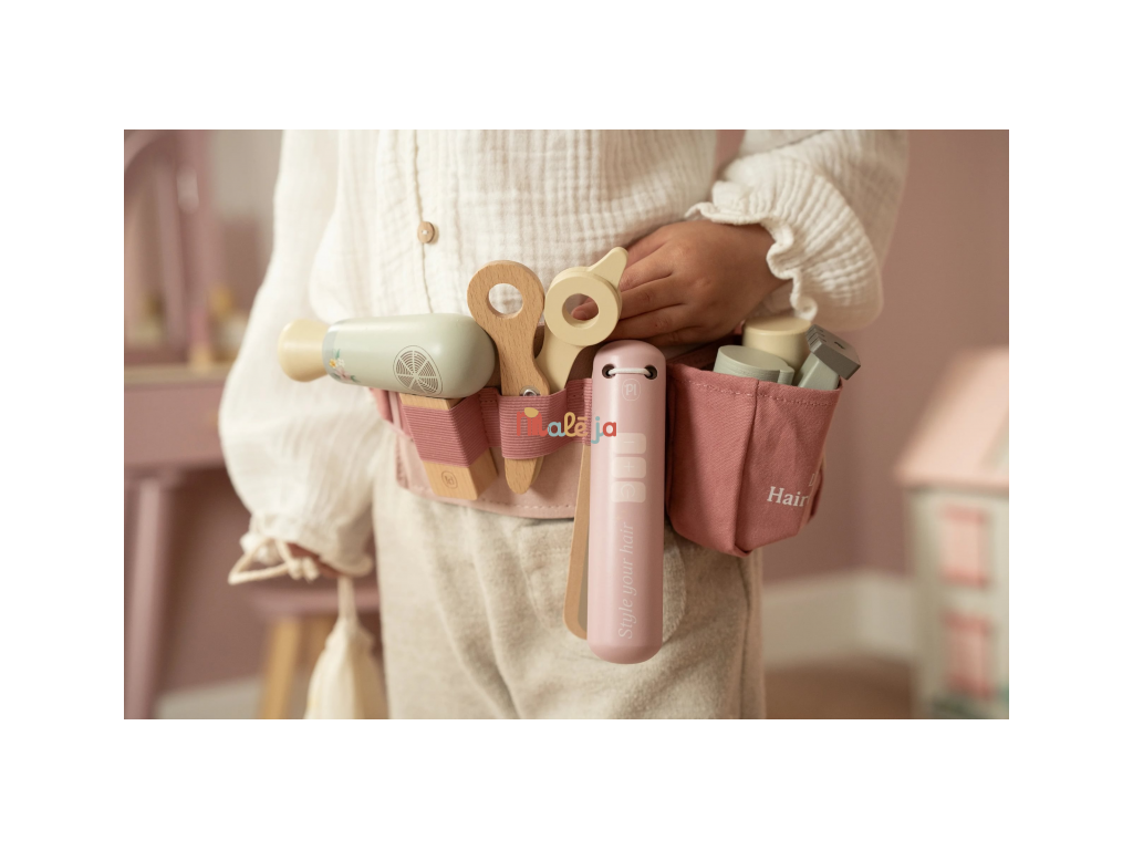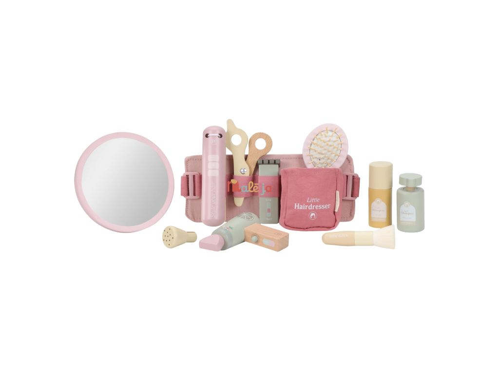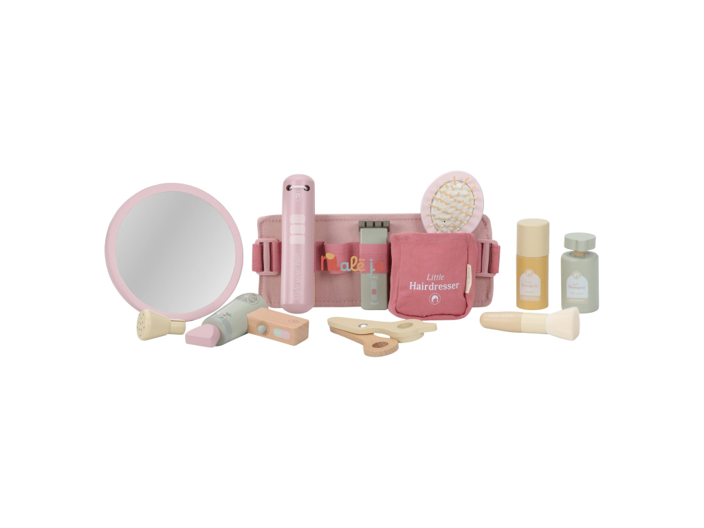 Stříhání, foukání a vytváření účesů jako u opravdového kadeřníka, to vše přináší dětem tato kouzelná dřevěná sada Little Dutch. Najdou v ní vše, co potřebují k otevření vlastního salonu krásy pro panenky, sourozence i kamarády. Kdo bude první zákazník?
