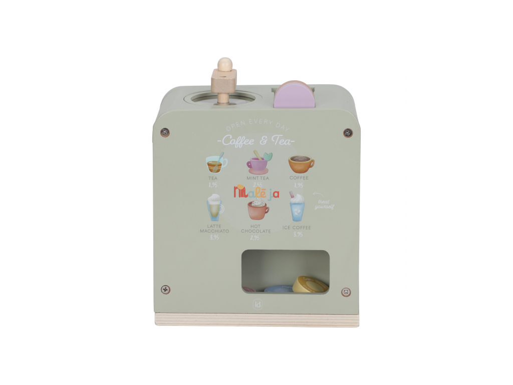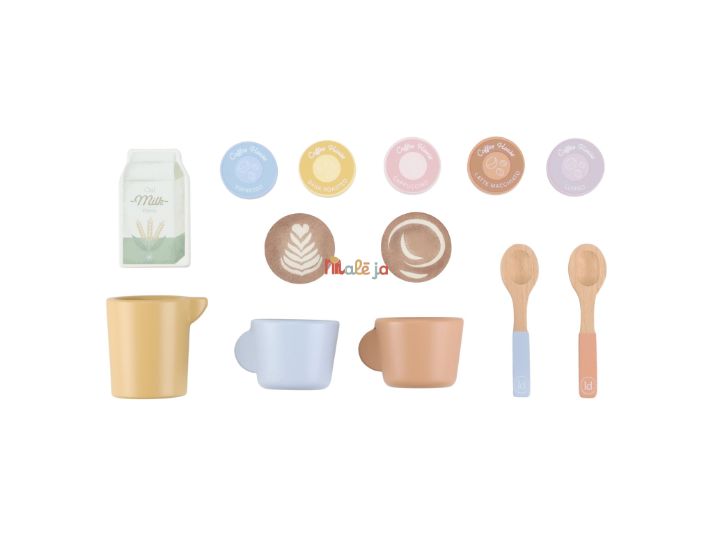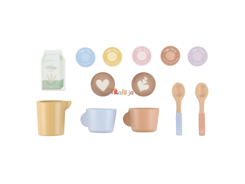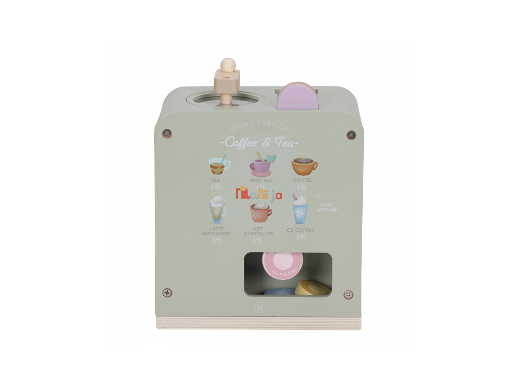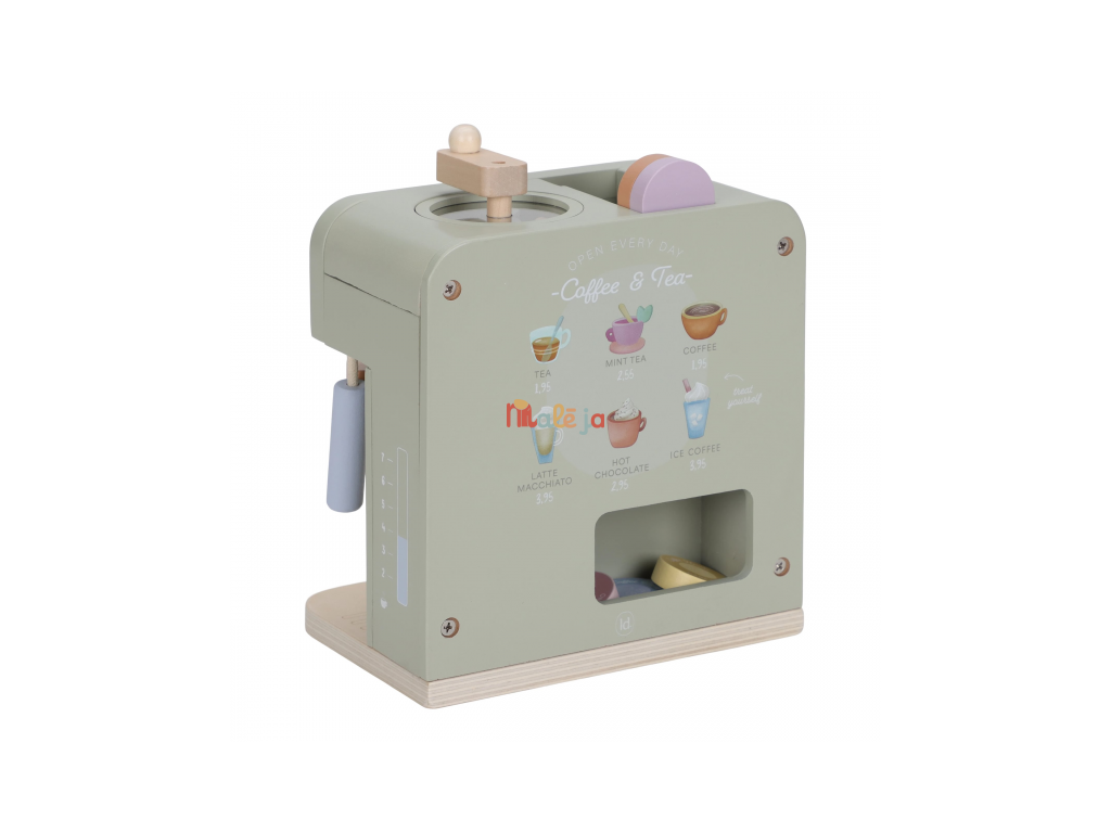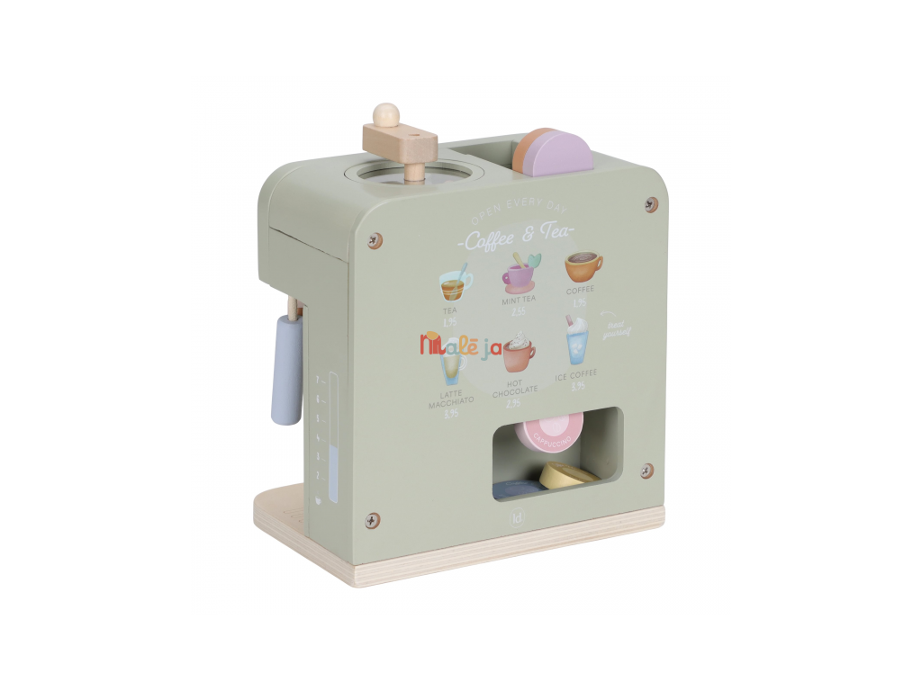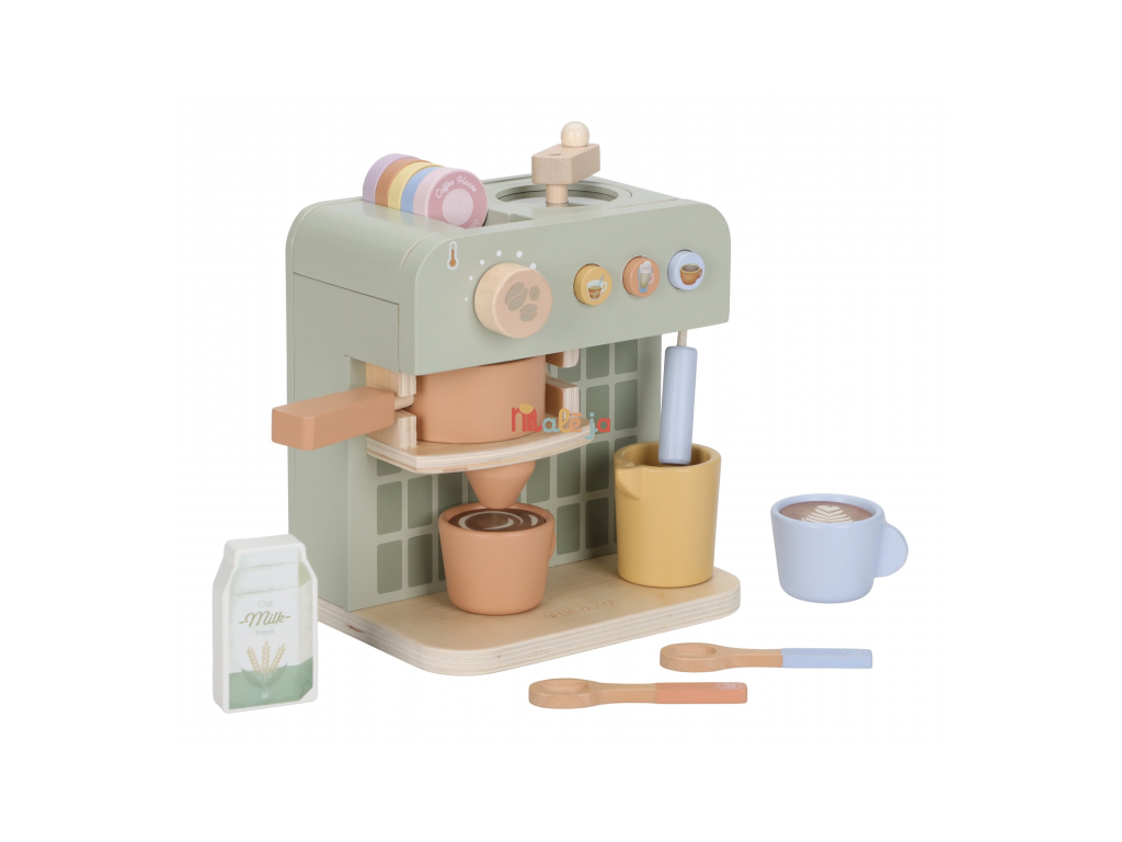 Na akú kávu máte dnes chuť? S týmto krásnym dreveným kávovarom sa z každého dieťaťa stane malý barista. Pre svojich hostí si môže namlieť kávu, vybrať kapsulu, naliať mlieko a ozdobiť nápoj podľa vlastnej fantázie.