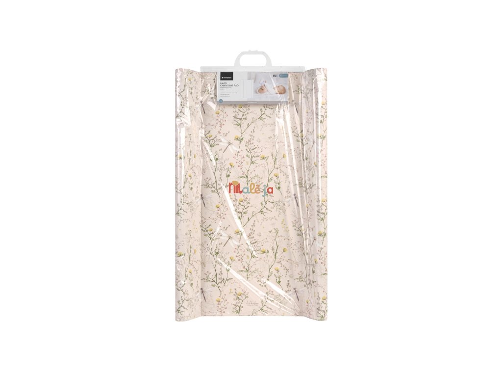 Prebaľovacia podložka s pevnou základňou zaistí dieťaťu pohodlie počas prebaľovania. Vyvýšené bočné okraje pomáhajú udržať dieťa počas prebaľovania bezpečne na prebaľovacom pulte. MDF základňa s prídavnými nožičkami umožňuje použitie nielen na prebaľovacom pulte, ale aj na drevenej postieľke šírky 60 cm. Vodeodolný povrch s krásnou potlačou ľahko očistíte otretím alebo umytím. Rozmery: 70 x 50 x 11-13,5 cm Hmotnosť: 2,4 kg Zloženie: poťah 100% PVC, výplň 84% MDF, 16% polyuretán Vyrobené z bezpečných materiálov v súlade s normou EN 71-1. Vhodné pre deti od narodenia do 12 mesiacov (do 11 kg).