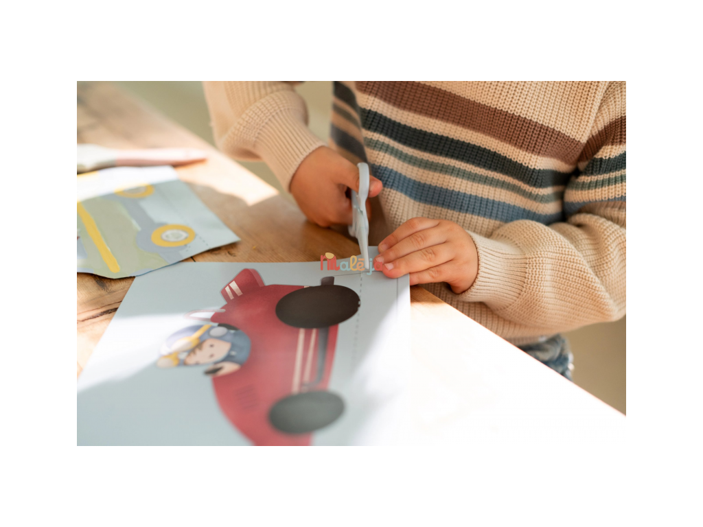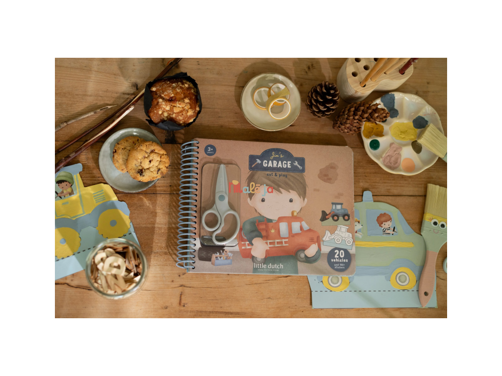 Originálna kreatívna kniha Little Dutch poteší všetkých malých milovníkov áut a tvorenia. Obsahuje 20 farebných vystrihovacích vozidiel, ktoré si deti po vystrihnutí môžu dozdobiť a vytvoriť si tak vlastnú zbierku áut, strojov a dopravných prostriedkov. Súčasťou balenia sú bezpečné detské nožnice, vďaka ktorým môžu deti masky vystrihovať samostatne a bez rizika.