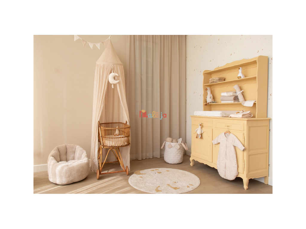Koberec je súčasťou dizajnovej kolekcie textilu a doplnkov Little Dutch Newborn Naturals.