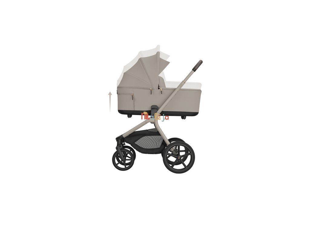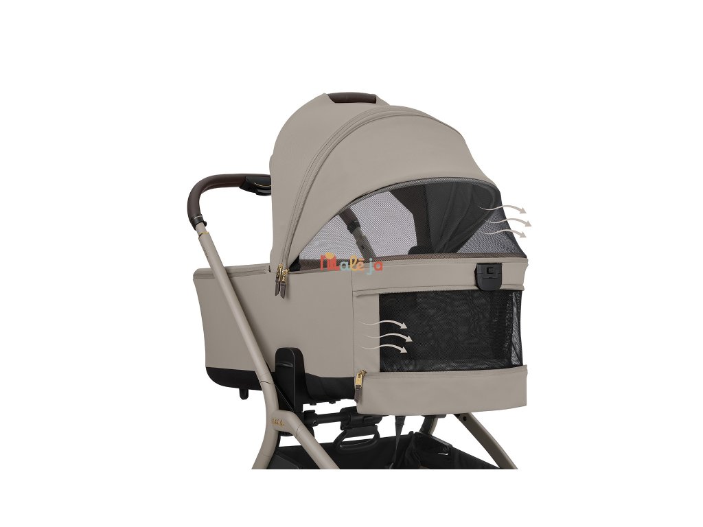 KikkaBoo Goya Platinum je moderný kočík 2v1 navrhnutý pre rodičov, ktorí chcú maximálnu flexibilitu od narodenia až do batoľacieho veku. Ponúka otočné športové sedenie po aj proti smeru jazdy, vaničku s kompaktným skladaním priamo na podvozku a bohatú výbavu v cene. Ľahký hliníkový podvozok vyniká rýchlym skladaním, takže sa kočík dobre používa pri každodenných prechádzkach aj na cestách. Kočík s vaničkou Vanička je navrhnutá s dôrazom na skladnosť a ponúka jedinečnú možnosť skladania kočíka do kompaktného tvaru vrátane vaničky nasadenej na podvozku.Tlačidlá s pamäťou umožňujú rýchle uvoľnenie vaničky z podvozku jednou rukou. Na prispôsobenie kočíka podľa výšky rodiča je možné nastaviť výšku vaničky do dvoch polôh. Pre pohodlie dieťaťa je súčasťou obojstranný mäkký matrac so zimnou stranou z kvalitného zamatového materiálu a letnou stranou z priedušnej sieťoviny pre lepšiu ventiláciu. Strieška má zipsové predĺženie, slnečnú clonu a dopĺňa ju extra slnečná clona pre maximálny tieň. Ventiláciu zaisťujú sieťované vetracie otvory na strieške aj v oblasti hlavy. Praktická je aj vrecko na telefón na zips.Vodeodolný textilný materiál s UPF 50+ chráni dieťa pred poveternostnými vplyvmi a slnečným žiarením. Kočík so sedákom Športové sedenie je možné nasadiť po aj proti smeru jazdy a vďaka tlačidlám s pamäťou ho uvoľníte z podvozku pohodlne jednou rukou. Výšku sedenia môžete nastaviť do dvoch polôh pre prispôsobenie kočíka podľa výšky rodiča. Odnímateľné madlo pred dieťaťom je otočné o 360 ° pre ľahkú manipuláciu s dieťaťom a potiahnuté príjemnou ekokožou. Komfort dieťaťa zaistí polohovanie opierky chrbta do 3 pozícií, nastaviteľná opierka nôh, vetracie otvory v opierke chrbta a 5-bodové pásy s magnetickou prackou. Strieška má zipsové predĺženie, slnečnú clonu a ventilačné okienko.Vodeodolný textilný materiál s UPF 50+ chráni dieťa pred poveternostnými vplyvmi a slnečným žiarením. Pri jazde oceníte možnosť výškového nastavenia rukoväte do 5 pozícií. Pohodlnú jazdu a ľahké manévrovanie zaisťujú veľké kolesá, predné kolesá sú otočné o 360 ° s možnosťou aretácie. Nechýba pružinové odpruženie zadných aj predných kolies a spoľahlivá "one touch" brzda. Po zložení kočík samostatne stojí. Pre ľahké prenášanie je pripravený popruh cez rameno a madlo. Súčasťou kočíka je luxusná prebaľovacia taška s úchytmi pre zavesenie na rukoväť kočíka. ľahká hliníková konštrukcia rýchle skladanie s vaničkou aj so sedákom po zložení samostatne stojí prenášanie pomocou ramenného popruhu a madla otočný sedák po aj proti smeru jazdy uvoľnenie sedadla aj vaničky jednou rukou vďaka tlačidlám s pamäťou výškovo nastaviteľný sedák aj vanička v 2 pozíciách nastaviteľná rukoväť s poťahom z ekokože v 5 pozíciách 5-bodové pásy s magnetickou prackou odnímateľné madlo pred dieťa otočné o 360 ° vodeodolné textílie s UPF 50+ odpruženie všetkých štyroch kolies veľké kolesá (11,5" zadné a 8" predné) "one touch" brzda veľký košík s magnetickým zatváraním do 10 kg Príslušenstvo v balení luxusná prebaľovacia taška s prebaľovacou podložkou a termo puzdrom nánožník k športovému sedáku nánožník ku vaničke adaptéry na vaničkou a autosedačku pláštenka držiak na nápoj extra slnečná clona Kočík je vhodný pre deti od narodenia až do 22 kg. Upozornenie: Nenechávajte dieťa v kočíku bez dozoru. Kočík nie je vhodný na behanie alebo jazdu na korčuliach. Vanička je vhodná iba pre deti, ktoré sa nevedia bez pomoci posadiť, prevaliť alebo zdvihnúť na kolená a ruky.