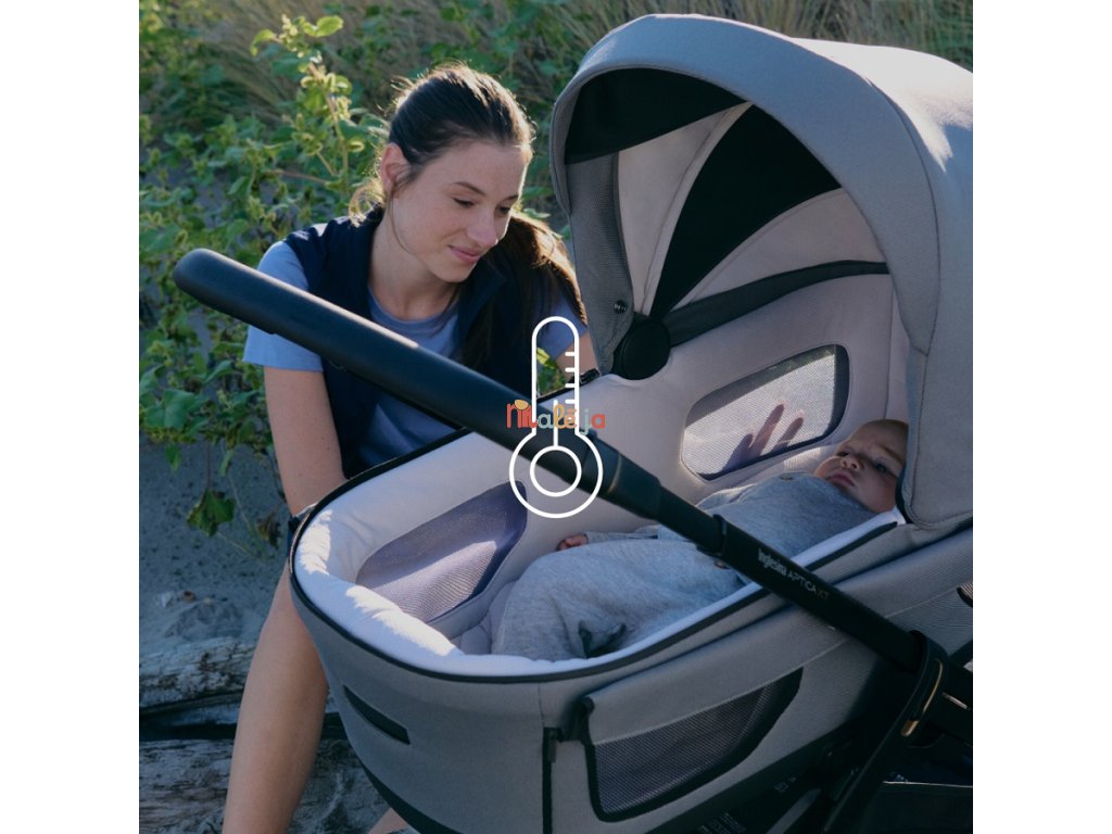 Kombinovaný kočík Aptica XT 2025 sa skladá z: priestrannej hlbokej vaničky XXL s 5-timi okienkami, matraca Welcome PadTM, stojana Stand UpTM, športovej sedačky All Season s búdkou a nánožníkom, košíka, držiaka pohárika a nového odľahčeného adaptívneho podvozku Aptica XT.